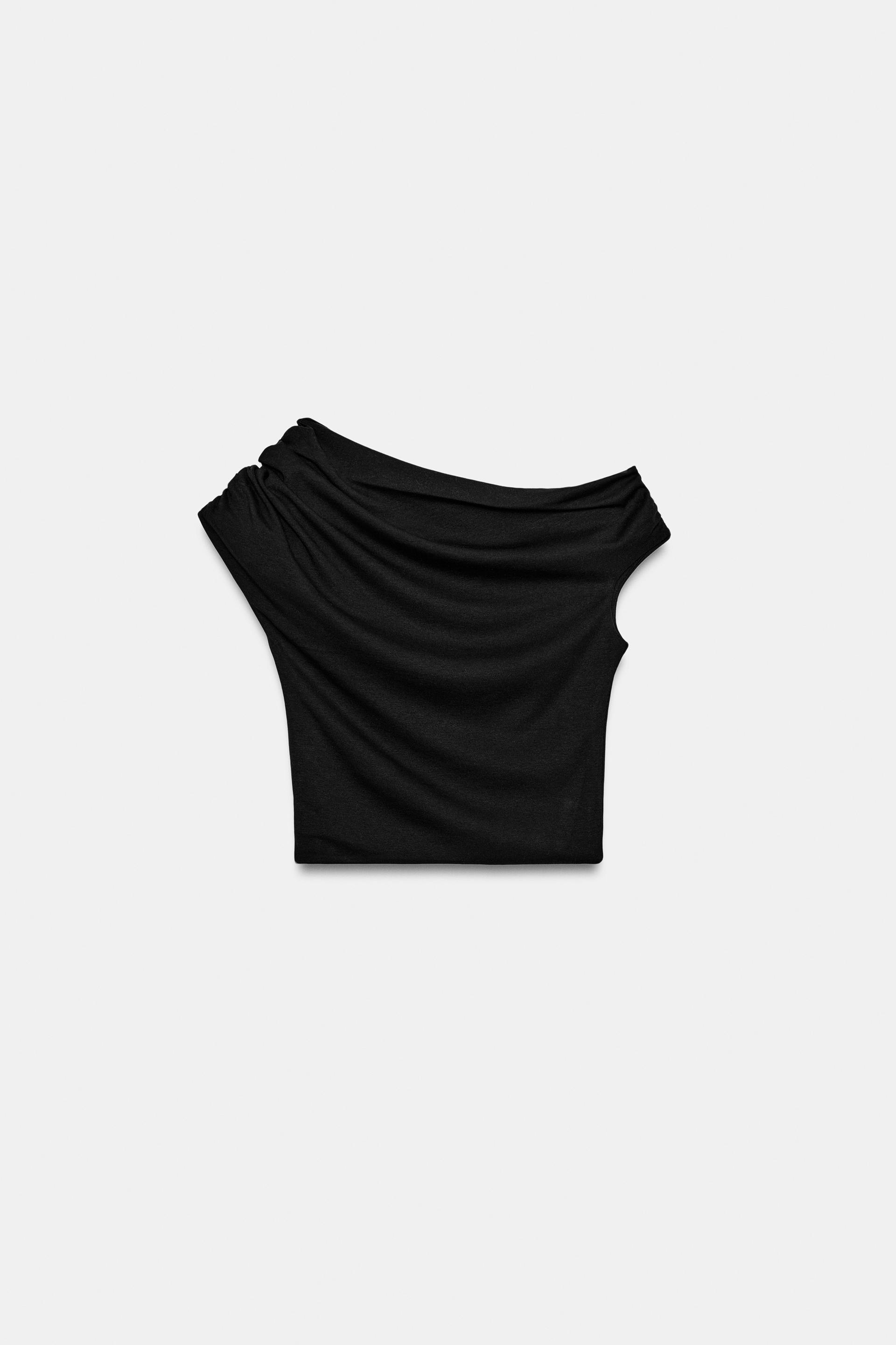 ZARA АСИММЕТРИЧНЫЙ ДРАПИРОВАННЫЙ ТОП, ЧЕРНЫЙ
