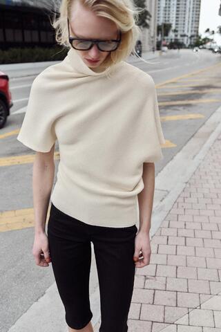 ZARA АСИММЕТРИЧНЫЙ ТРИКОТАЖНЫЙ СВИТЕР, ЭКРЮ