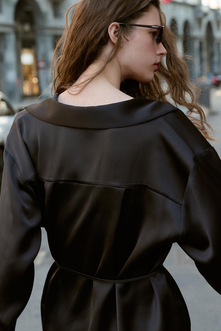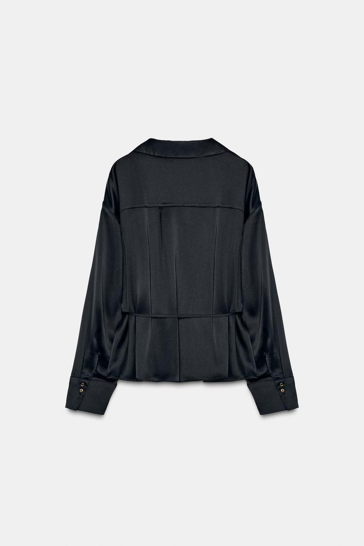 ZARA АТЛАСНАЯ БЛУЗА С ТОНКИМ РЕМНЕМ, ЧЕРНЫЙ