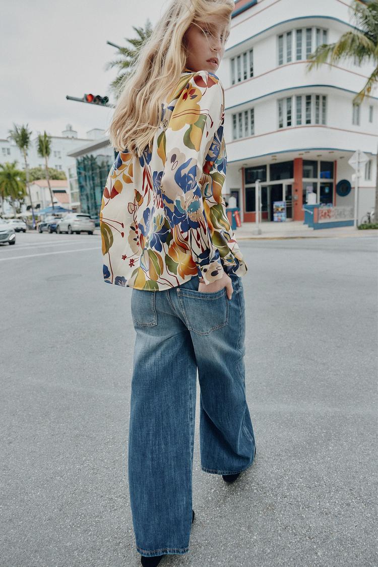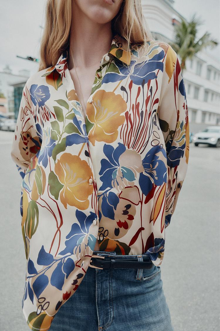 ZARA АТЛАСНАЯ БЛУЗКА С ПРИНТОМ, РАЗНОЦВЕТНЫЙ