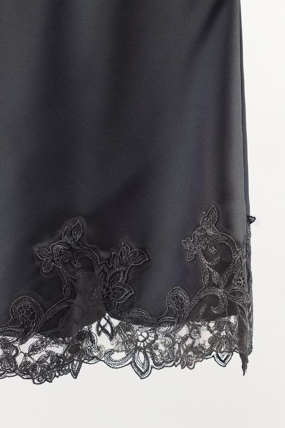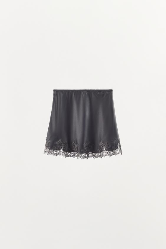 ZARA АТЛАСНАЯ МИНИ-ЮБКА С КРУЖЕВОМ, АНТРАЦИТОВО-СЕРЫЙ