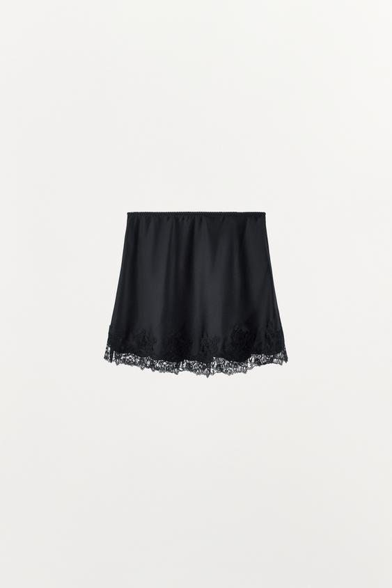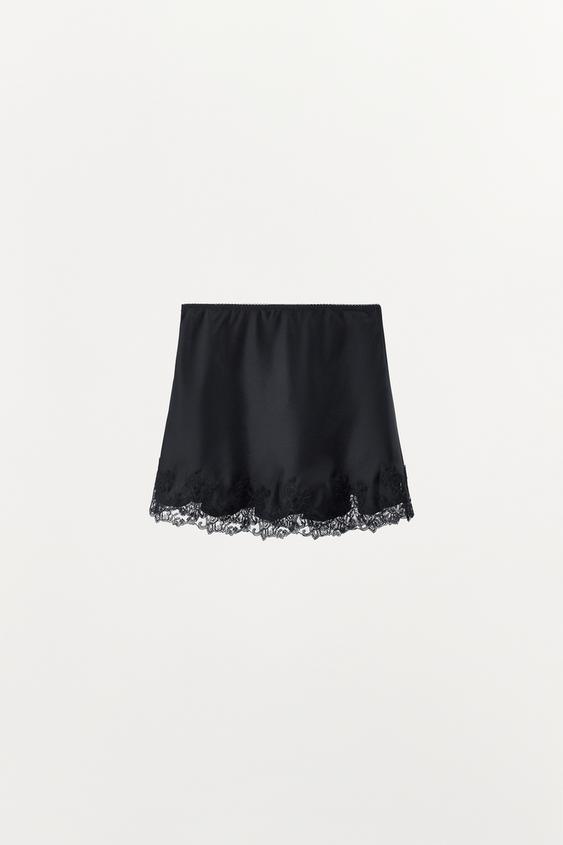 ZARA АТЛАСНАЯ МИНИ-ЮБКА С КРУЖЕВОМ, ЧЕРНЫЙ
