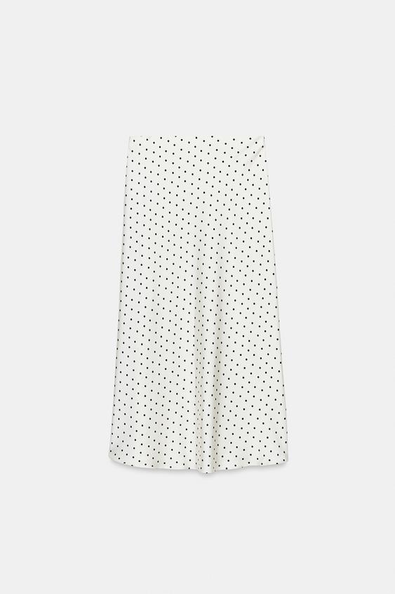 ZARA АТЛАСНАЯ ЮБКА МИДИ, ЭКРЮ/ЧЕРНЫЙ