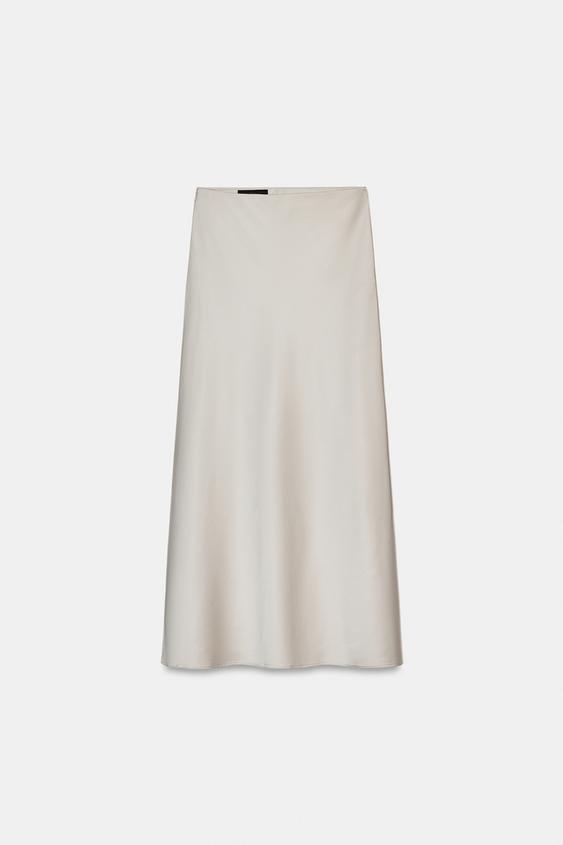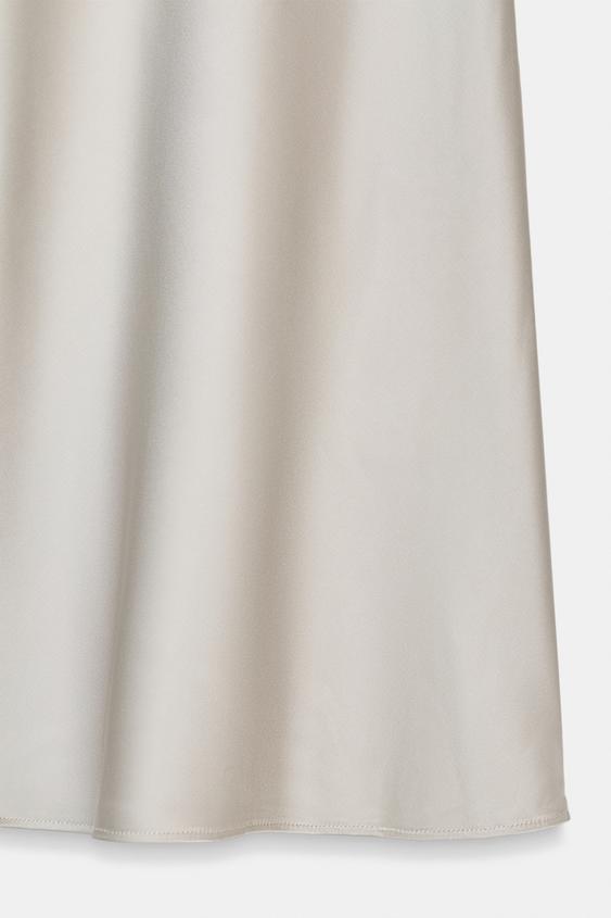 ZARA АТЛАСНАЯ ЮБКА МИДИ, ТЕМНО-БЕЖЕВЫЙ