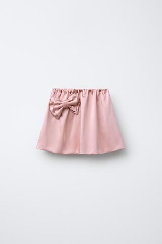 ZARA АТЛАСНАЯ ЮБКА-ШОРТЫ С БАНТОМ, РОЗОВЫЙ