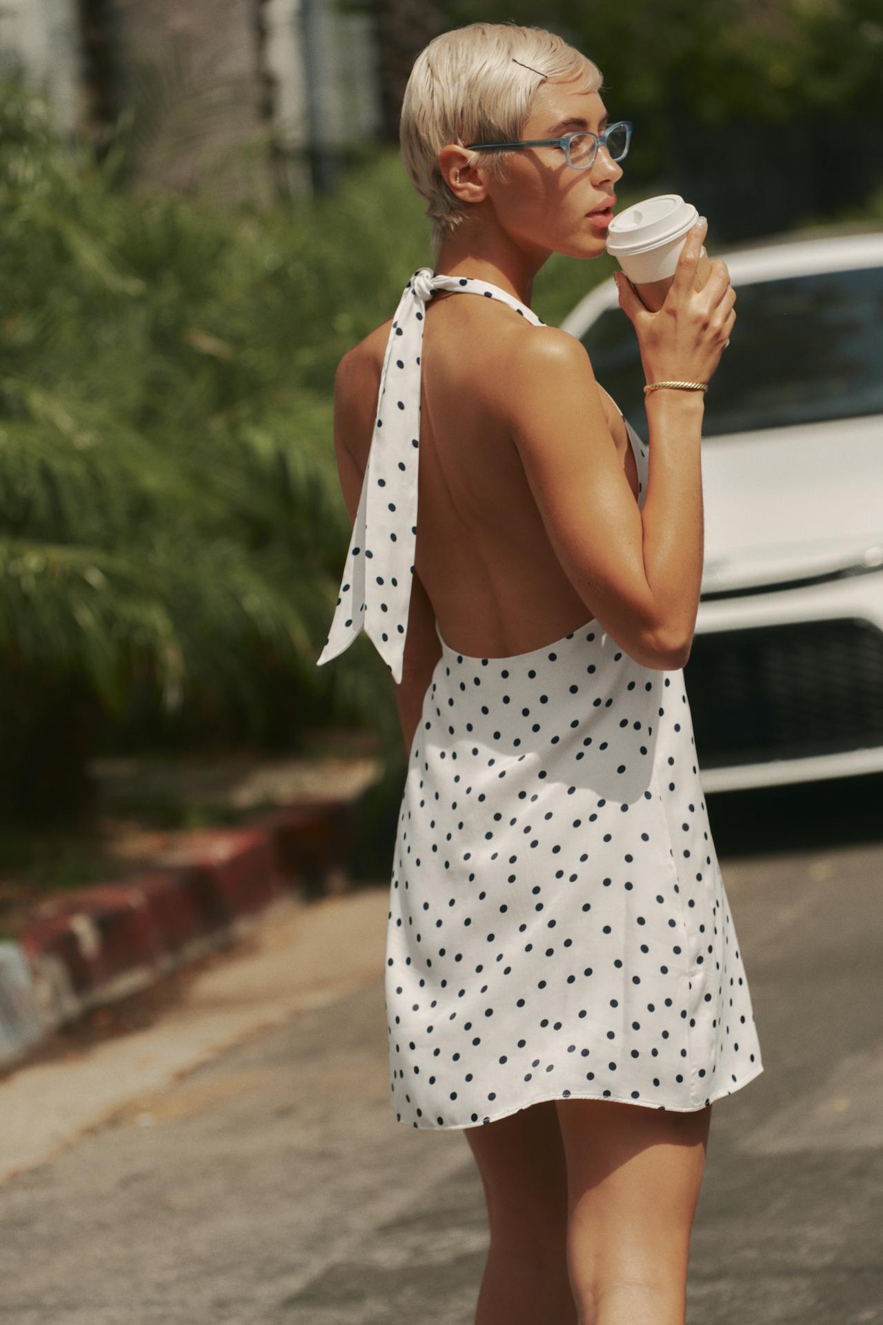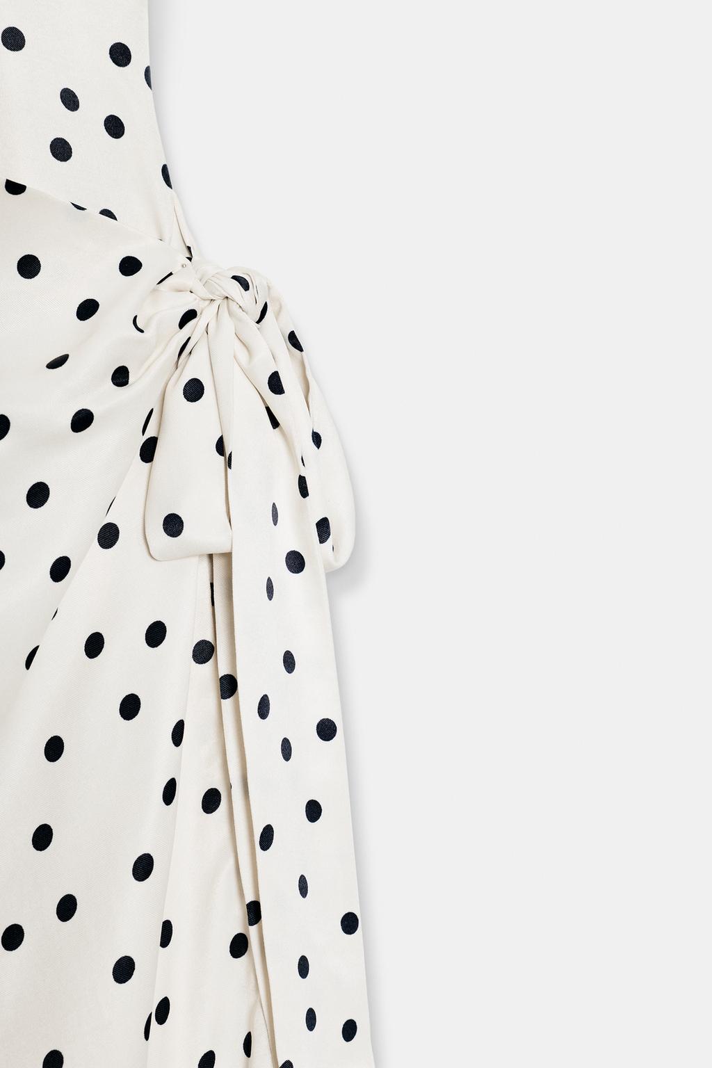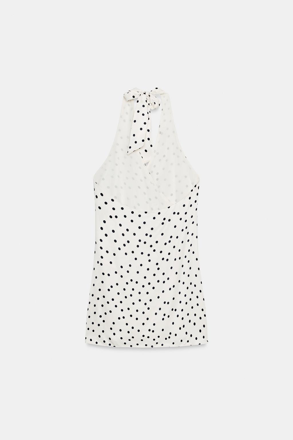 ZARA АТЛАСНОЕ ПЛАТЬЕ ХАЛТЕР В ГОРОШЕК, ЭКРЮ/ЧЕРНЫЙ