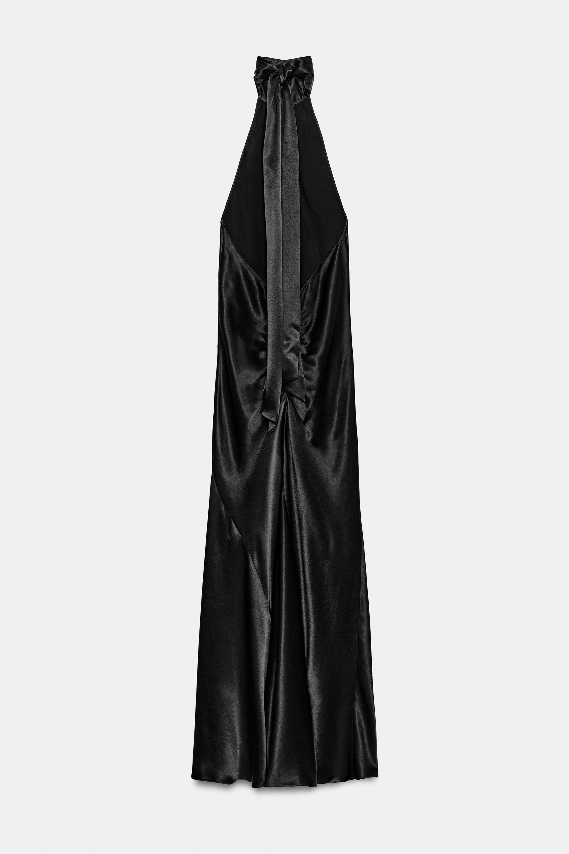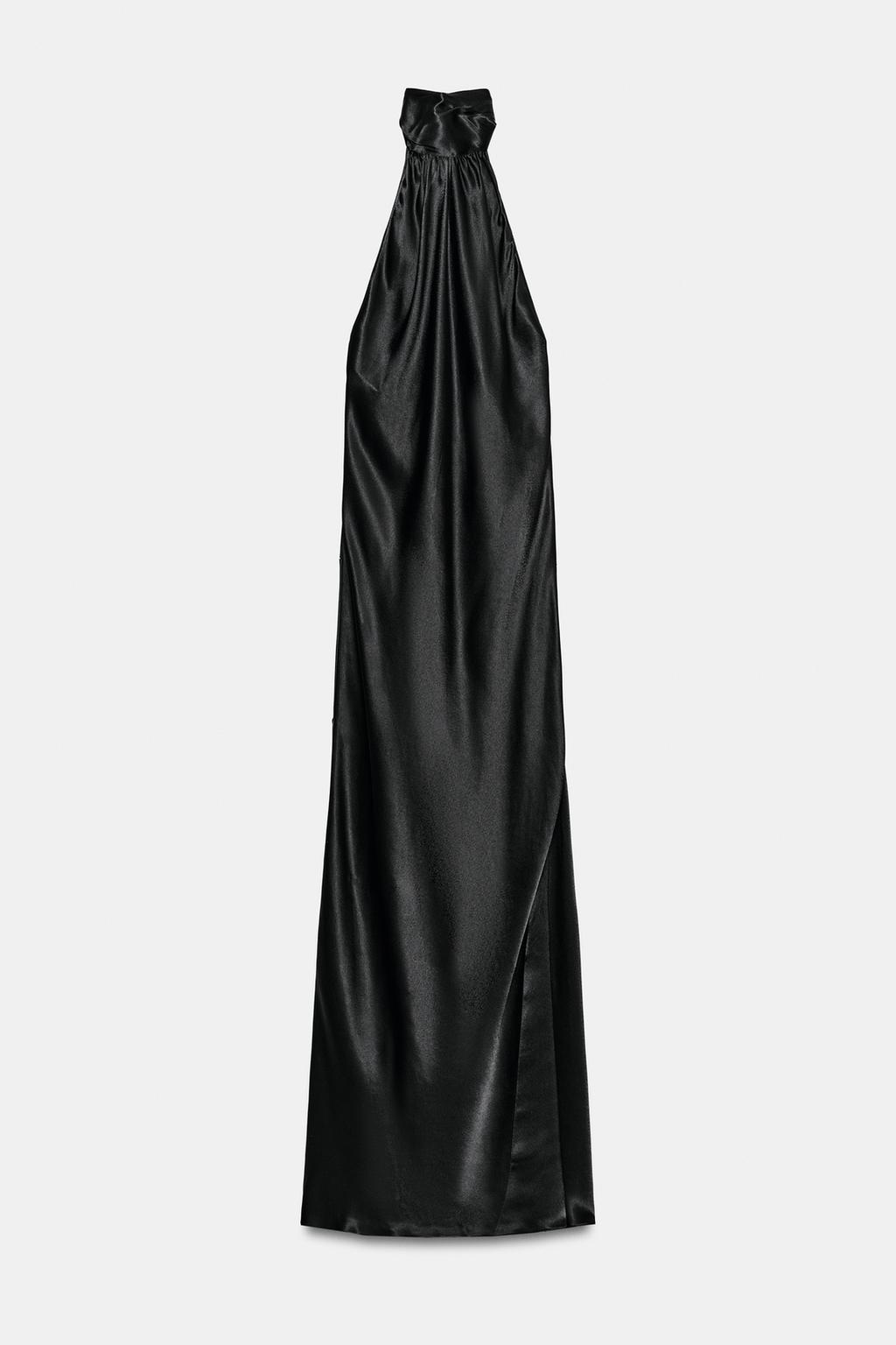 ZARA АТЛАСНОЕ ПЛАТЬЕ ХАЛТЕР — ZW COLLECTION, ЧЕРНЫЙ