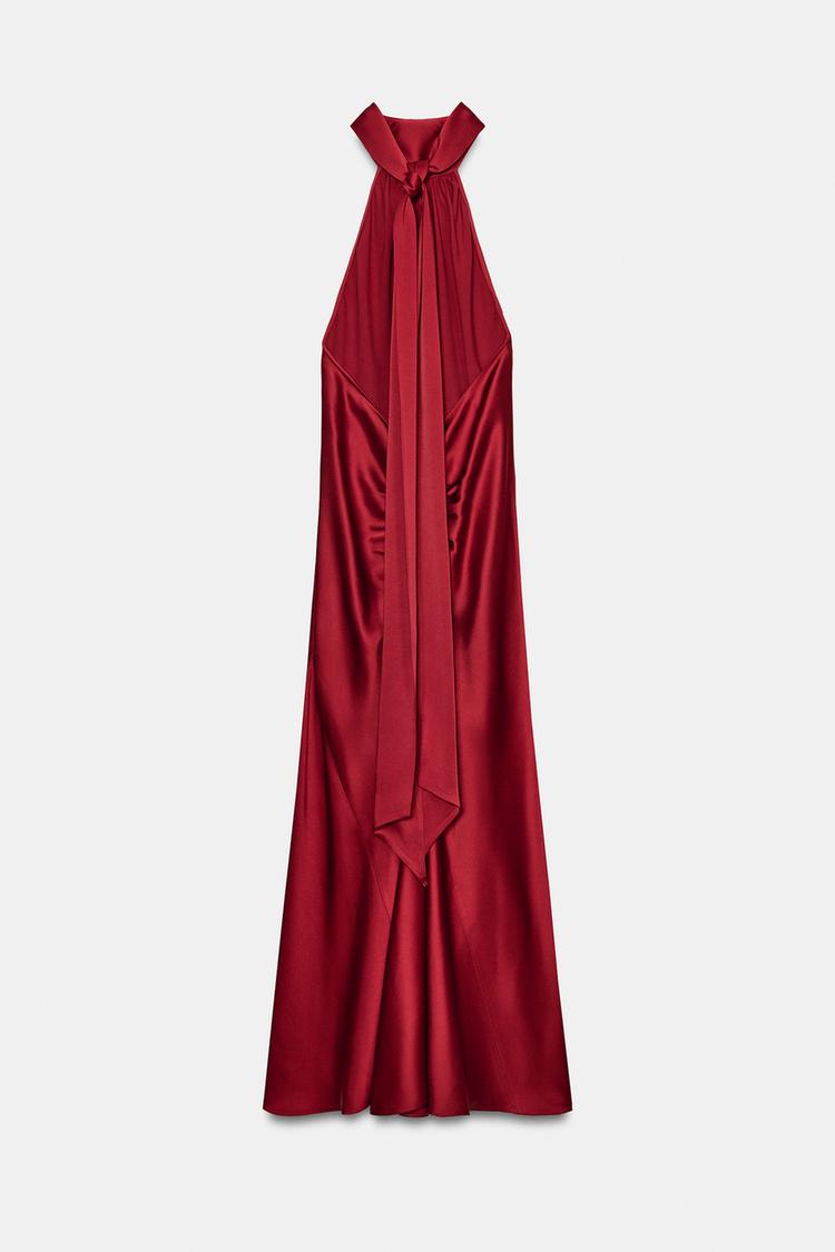 ZARA АТЛАСНОЕ ПЛАТЬЕ ХАЛТЕР — ZW COLLECTION, КРАСНЫЙ