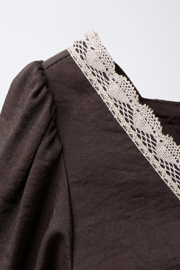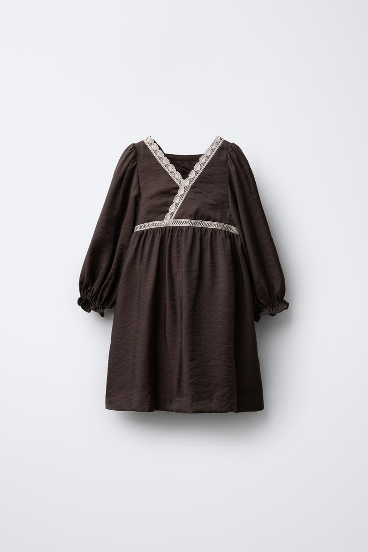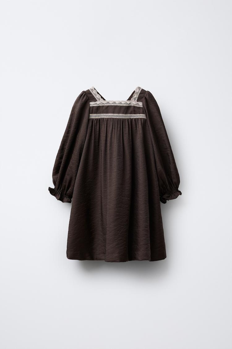 ZARA АТЛАСНОЕ ПЛАТЬЕ С КОНТРАСТНЫМ КРУЖЕВОМ, ШОКОЛАДНЫЙ