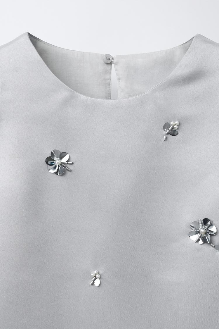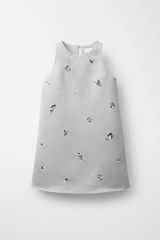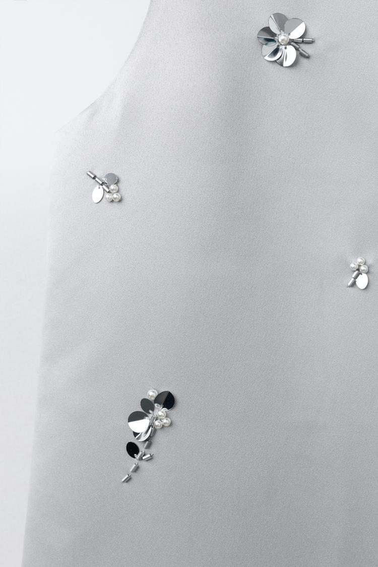 ZARA АТЛАСНОЕ ПЛАТЬЕ С ПАЙЕТКАМИ, СЕРЕБРИСТЫЙ