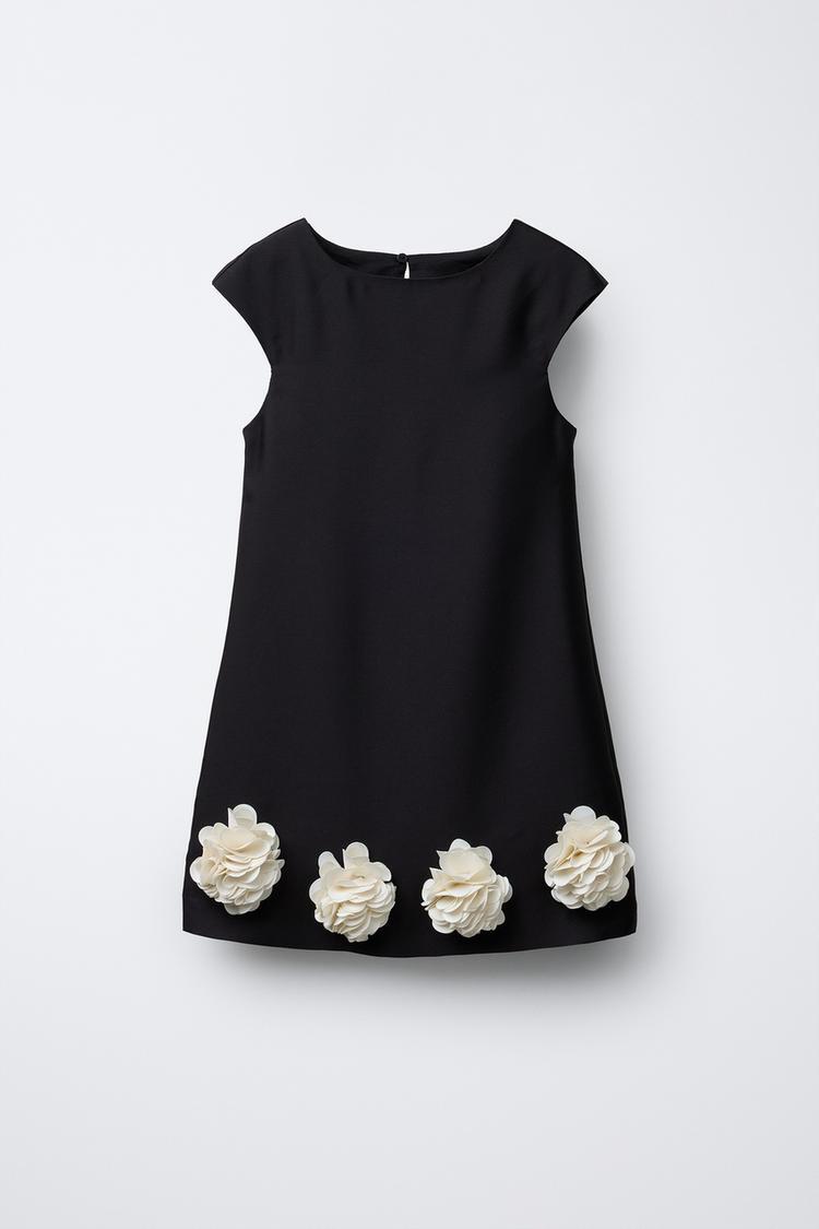 ZARA АТЛАСНОЕ ПЛАТЬЕ С ЦВЕТОЧНЫМ ПРИНТОМ, ЧЕРНЫЙ