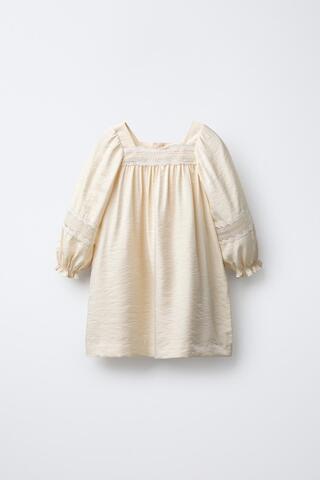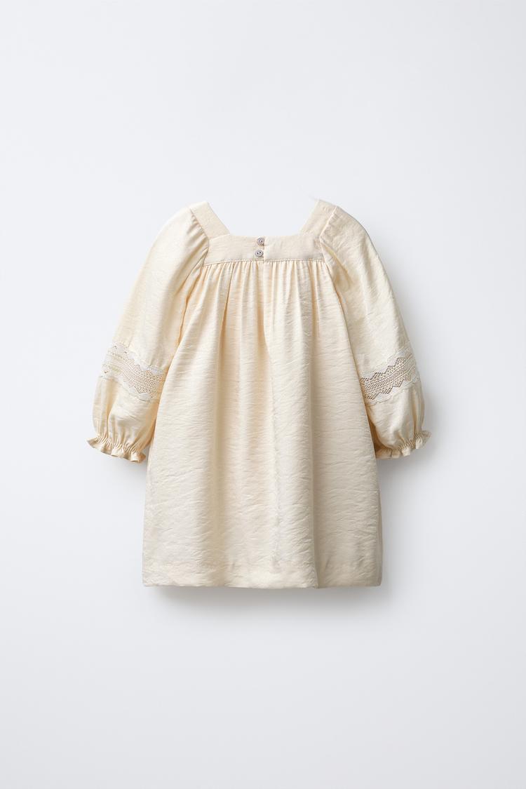 ZARA АТЛАСНОЕ ПЛАТЬЕ С ВЫШИВКОЙ, ЭКРЮ