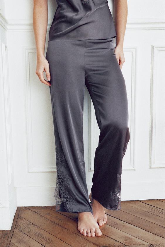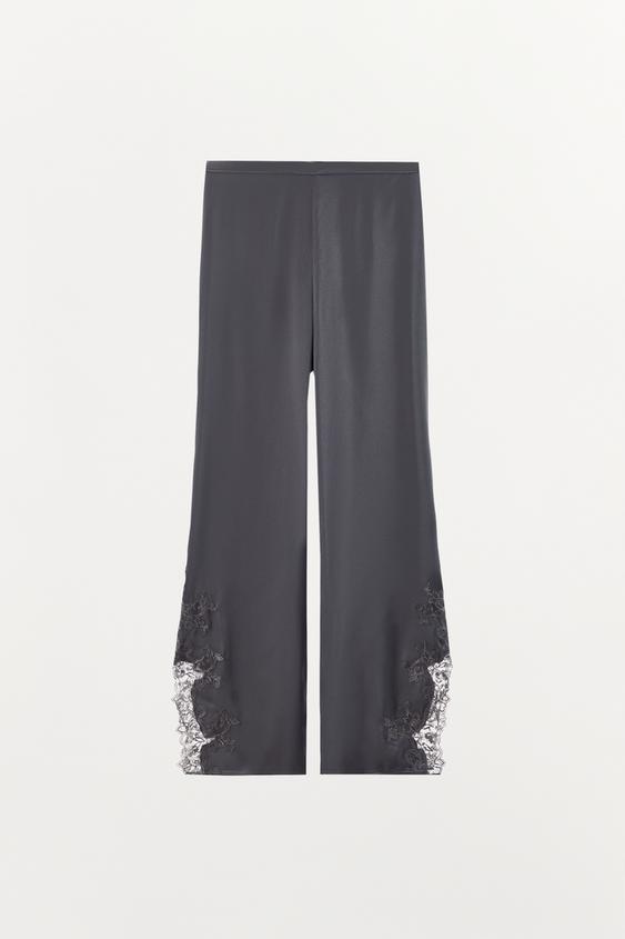 ZARA АТЛАСНЫЕ БРЮКИ С КРУЖЕВОМ, АНТРАЦИТОВО-СЕРЫЙ