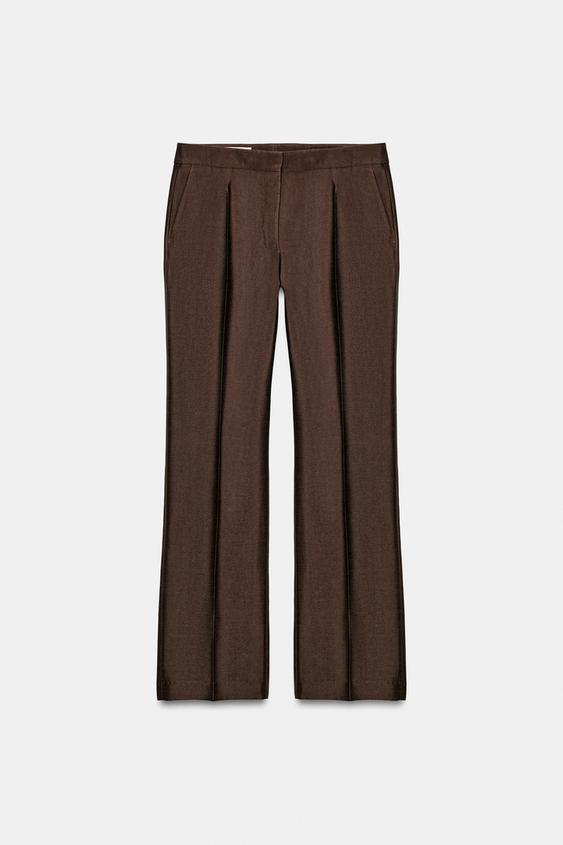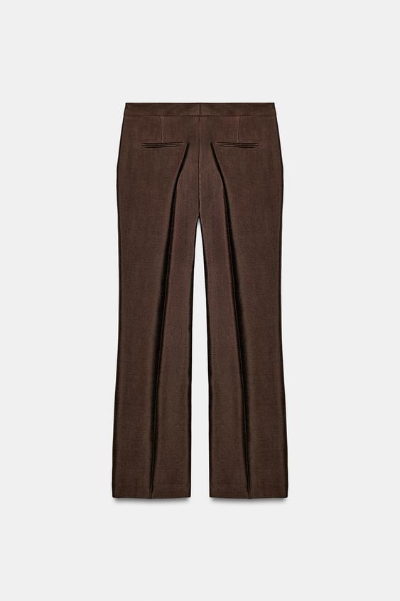 ZARA АТЛАСНЫЕ БРЮКИ SLIM, КОРИЧНЕВЫЙ