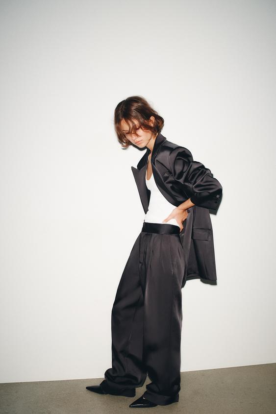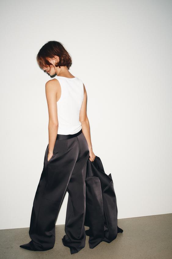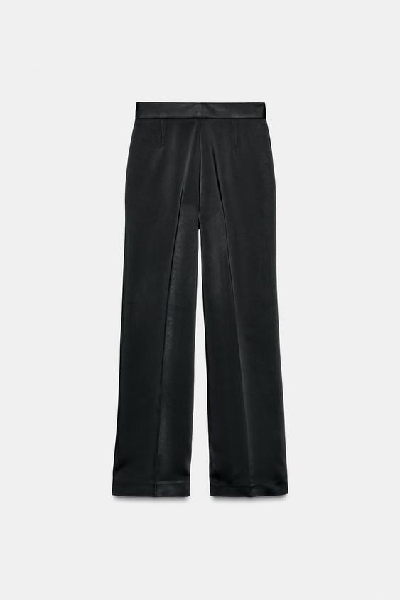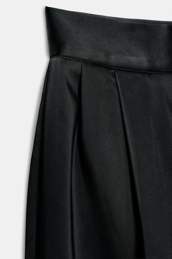 ZARA АТЛАСНЫЕ БРЮКИ СО СКЛАДКАМИ И ВЫСОКОЙ ПОСАДКОЙ, ЧЕРНЫЙ