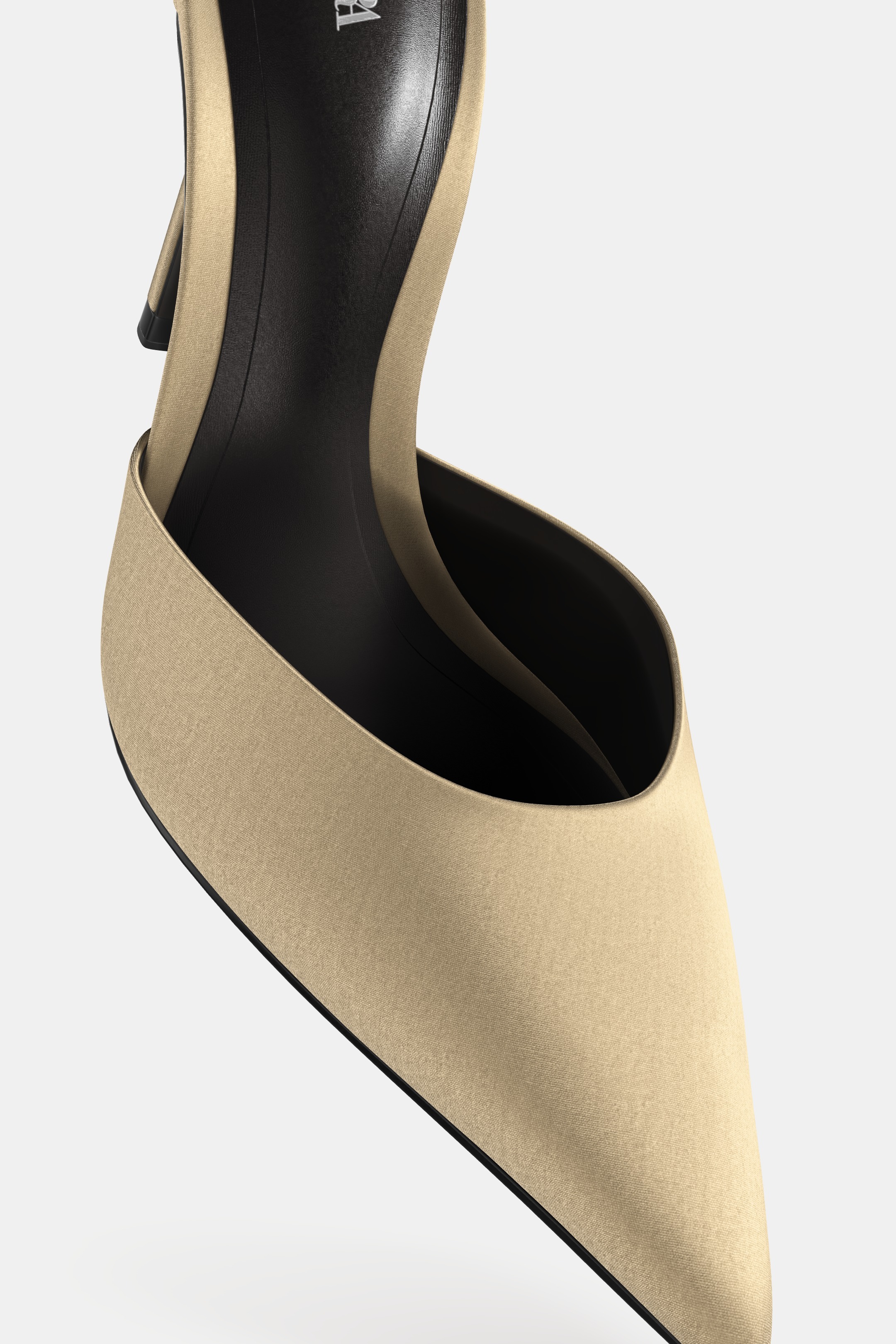 ZARA АТЛАСНЫЕ ТУФЛИ НА КАБЛУКЕ С РЕМЕШКОМ, ЗЕЛЕНОВАТЫЙ
