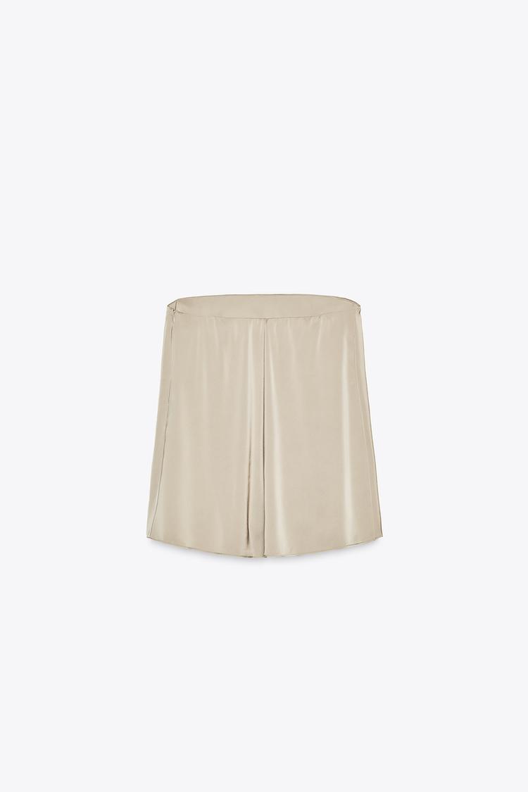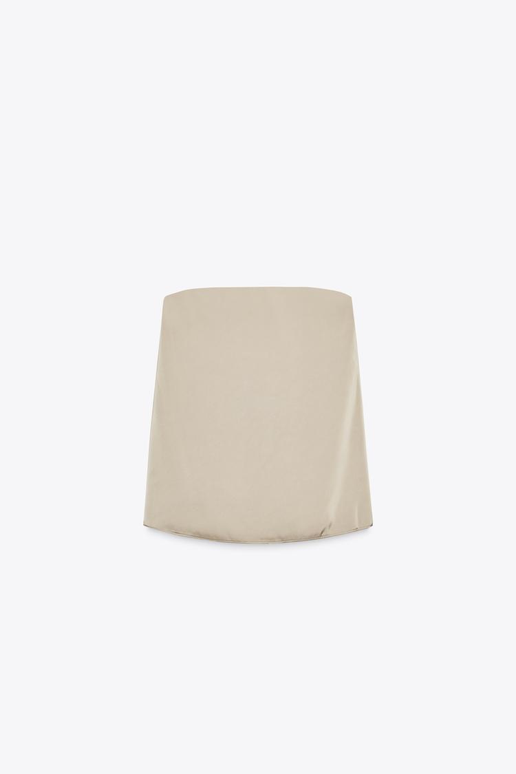 ZARA АТЛАСНЫЙ ТОП БЕЗ БРЕТЕЛЕЙ, БЕЖЕВЫЙ/ЗЕЛЕНЫЙ