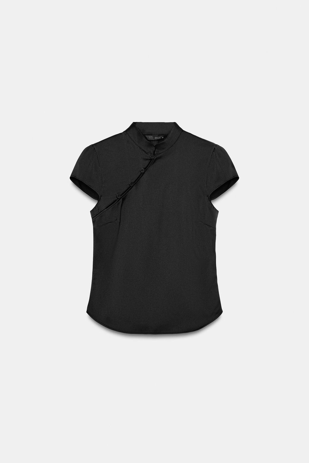 ZARA АТЛАСНЫЙ ТОП С БОКОВЫМИ ПУГОВИЦАМИ, ЧЕРНЫЙ