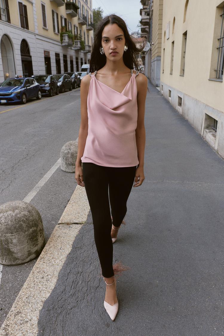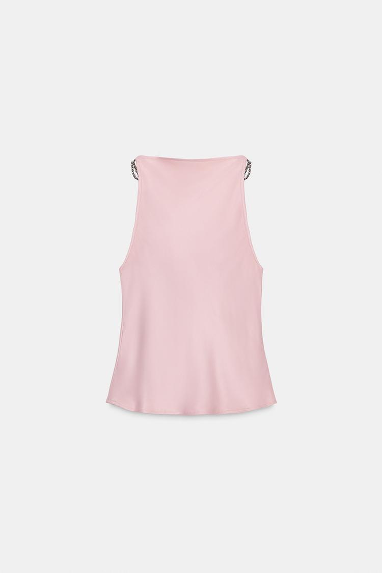 ZARA АТЛАСНЫЙ ТОП С БУСИНАМИ, ТЕЛЕСНО-РОЗОВЫЙ