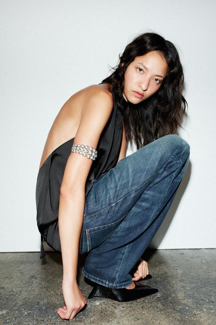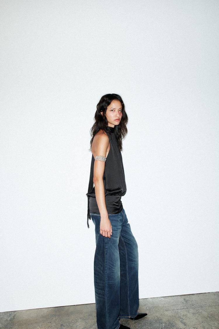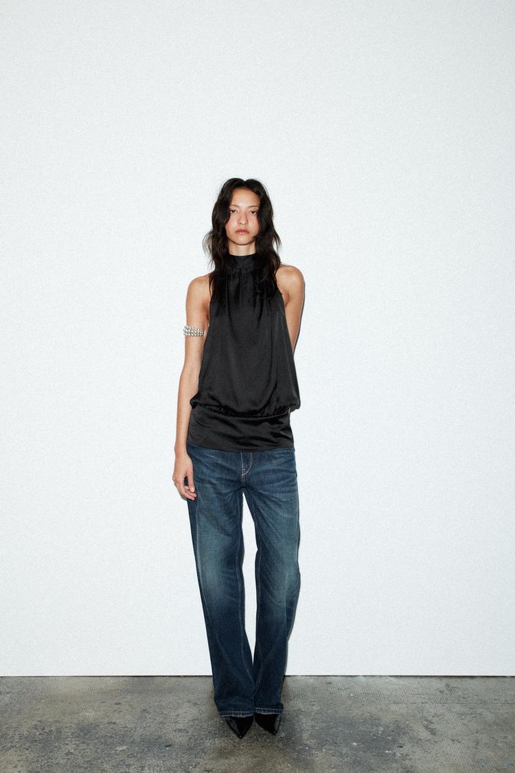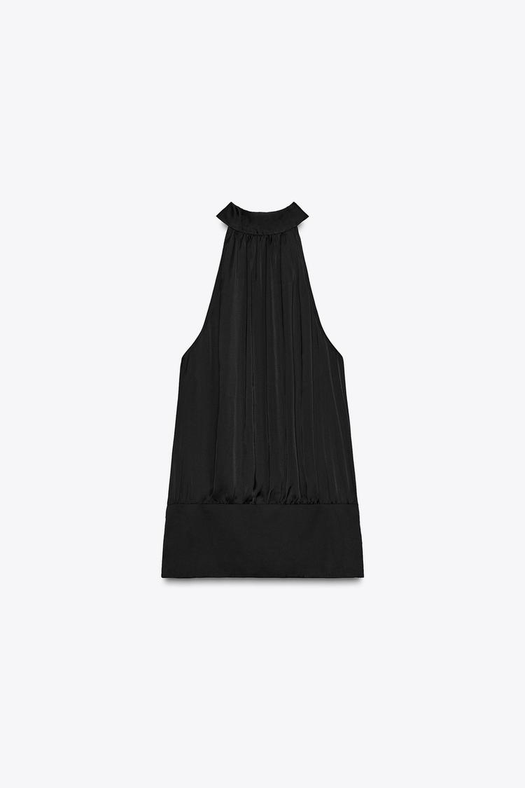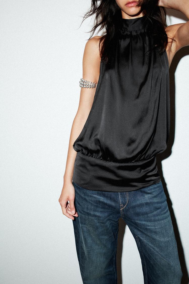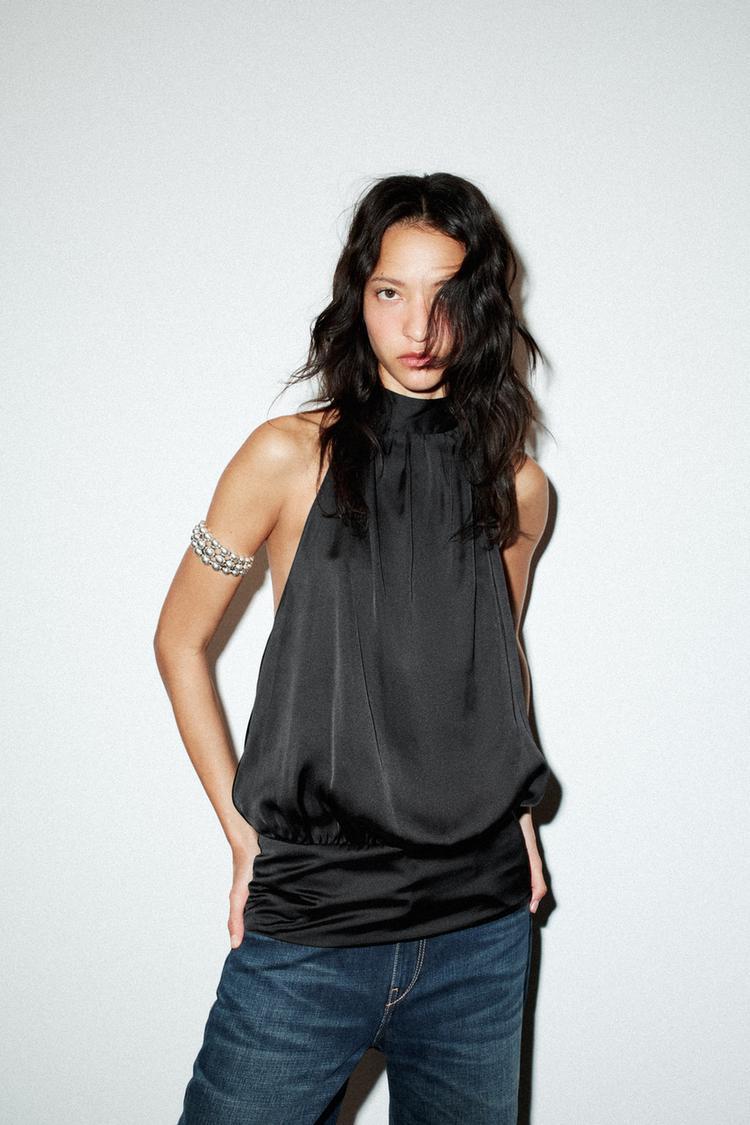 ZARA АТЛАСНЫЙ ТОП С ГОРЛОВИНОЙ ХАЛТЕР, ЧЕРНЫЙ
