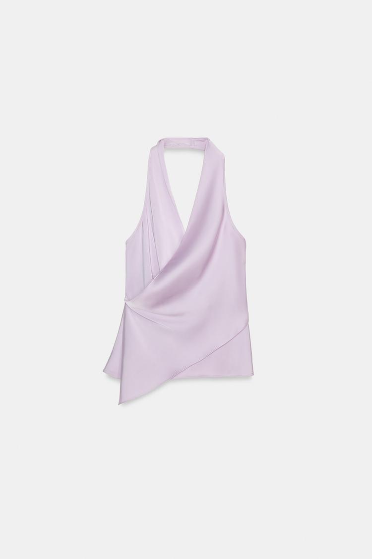 ZARA АТЛАСНЫЙ ТОП С ГОРЛОВИНОЙ ХАЛТЕР, СВЕТЛАЯ МАЛЬВА