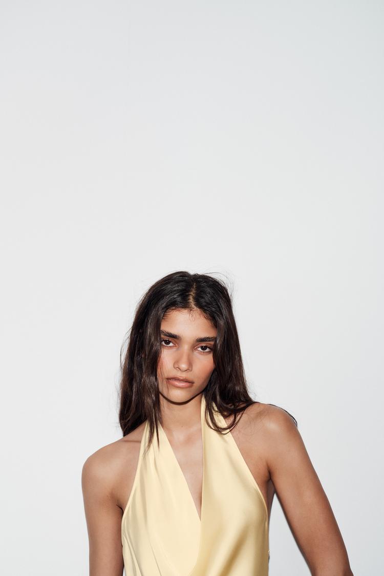 ZARA АТЛАСНЫЙ ТОП С ГОРЛОВИНОЙ ХАЛТЕР, ЯИЧНО-ЖЕЛТЫЙ