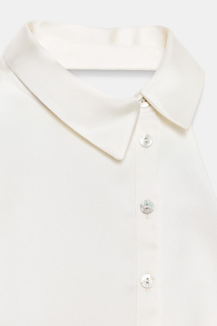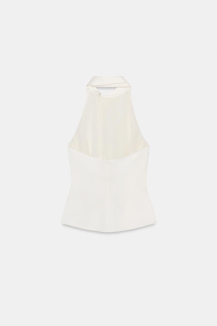 ZARA АТЛАСНЫЙ ТОП С ГОРЛОВИНОЙ ХАЛТЕР, ЖЕЛТОВАТО-БЕЛЫЙ