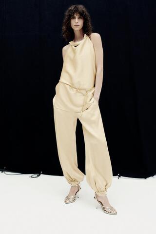 ZARA АТЛАСНЫЙ ТОП С ГОРЛОВИНОЙ ХАЛТЕР, ЗОЛОТИСТЫЙ