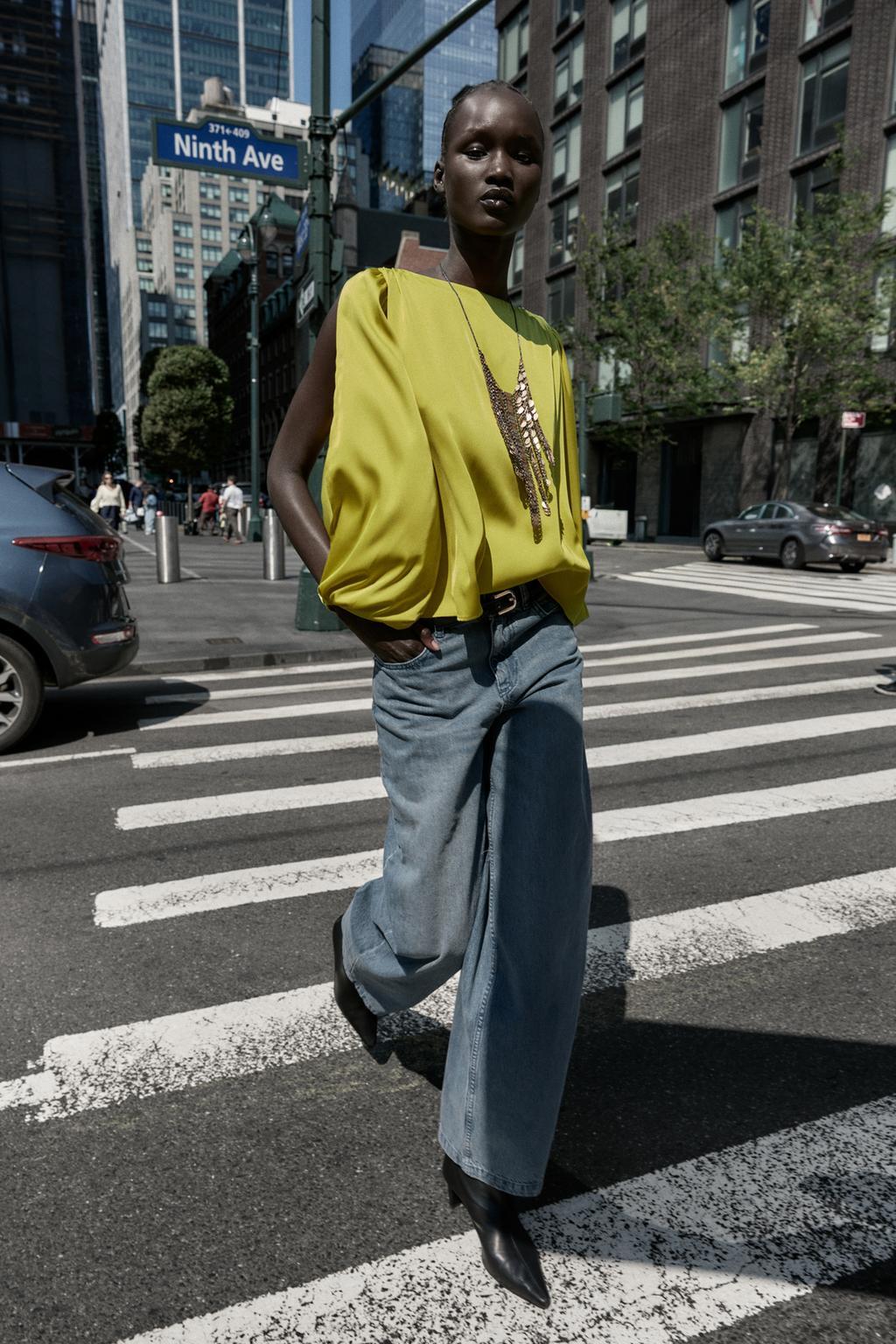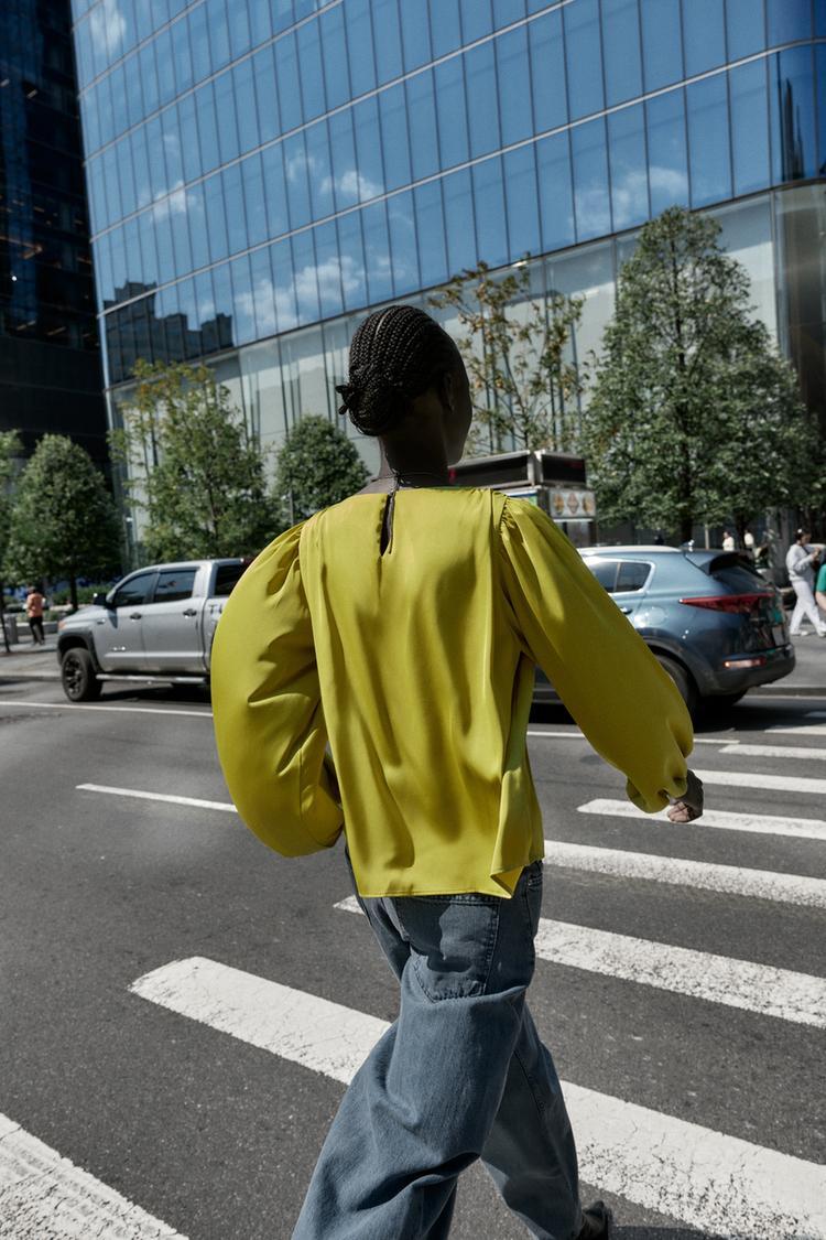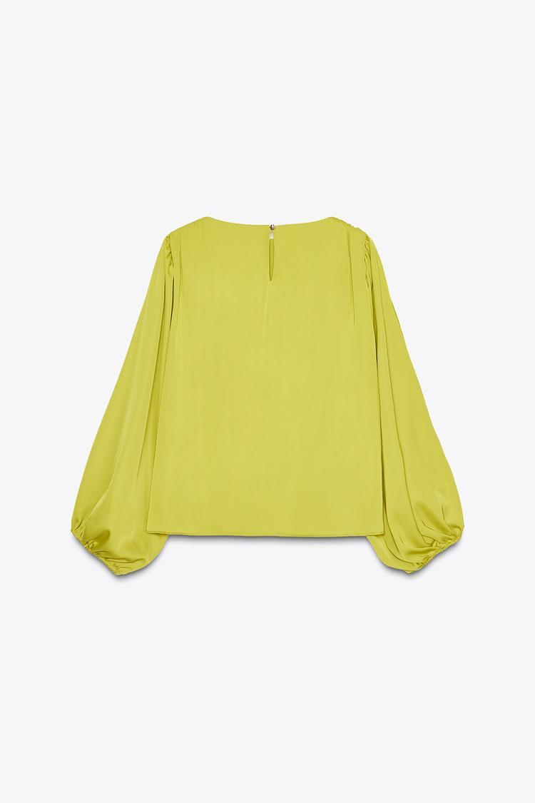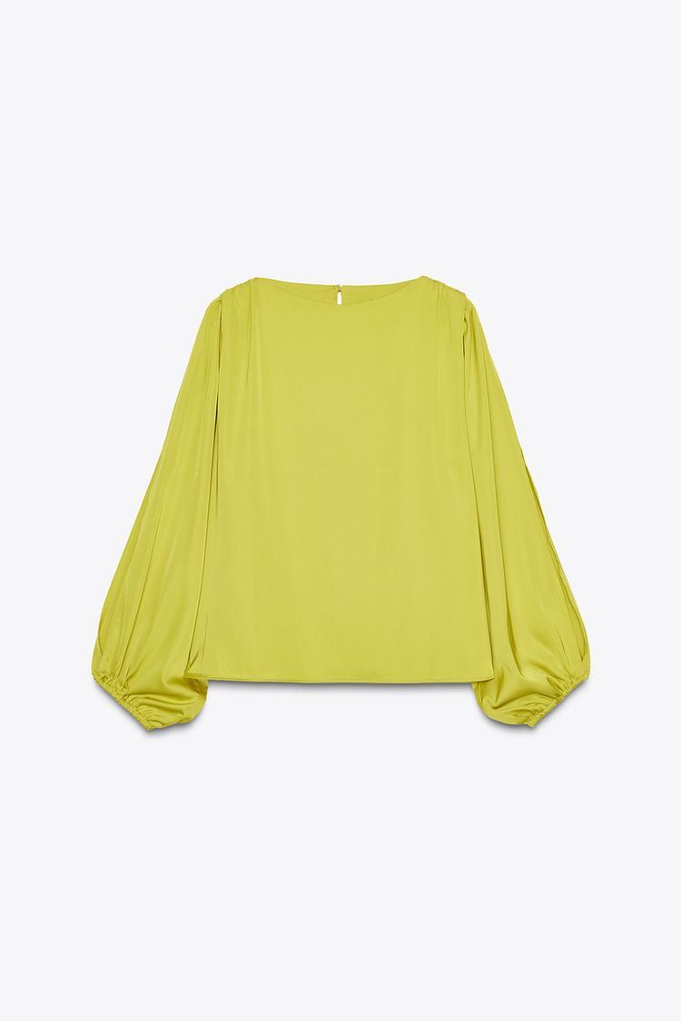 ZARA АТЛАСНЫЙ ТОП С РАЗРЕЗАМИ НА РУКАВАХ, ЛАЙМОВЫЙ
