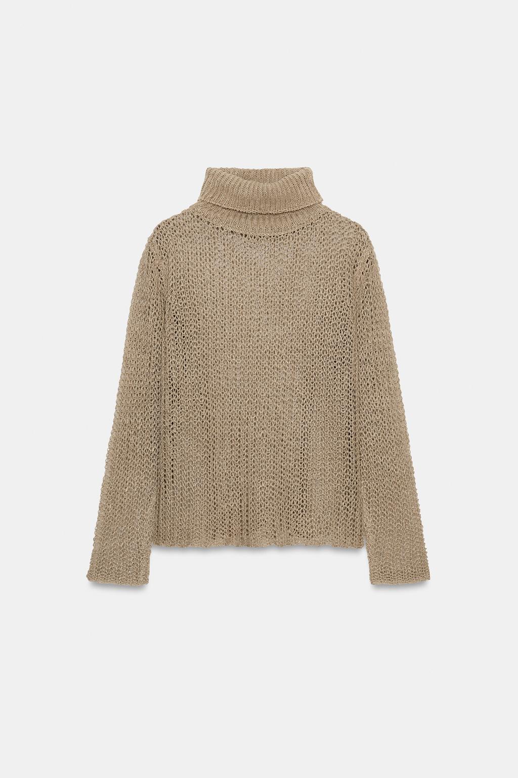 ZARA АЖУРНЫЙ СВИТЕР ИЗ 100% ЛЬНА, ЦВЕТ ПРЯЖИ