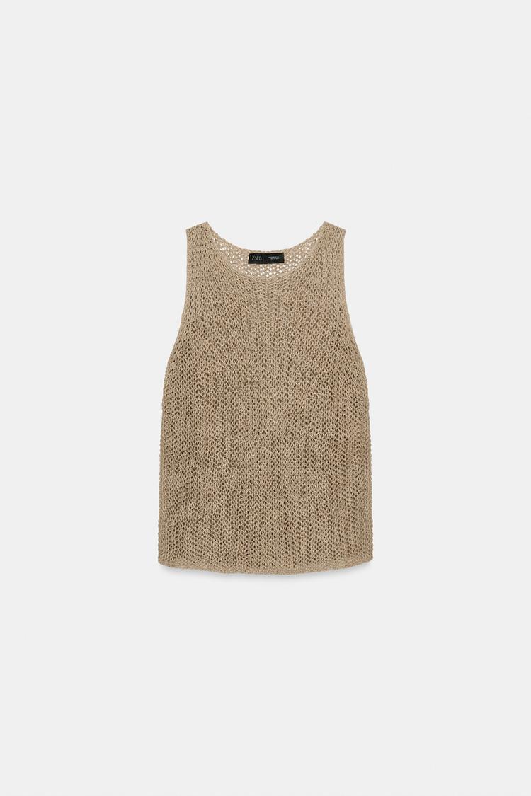 ZARA АЖУРНЫЙ ТОП ИЗ 100% ЛЬНА, ЦВЕТ ПРЯЖИ