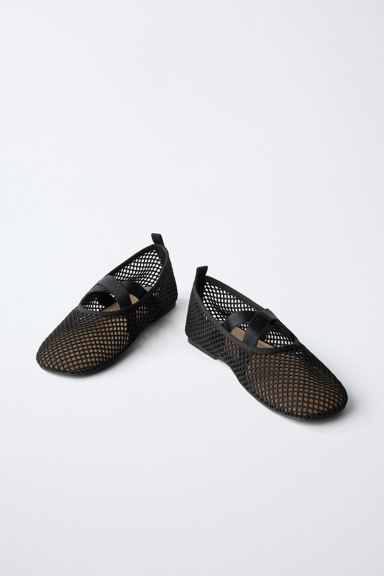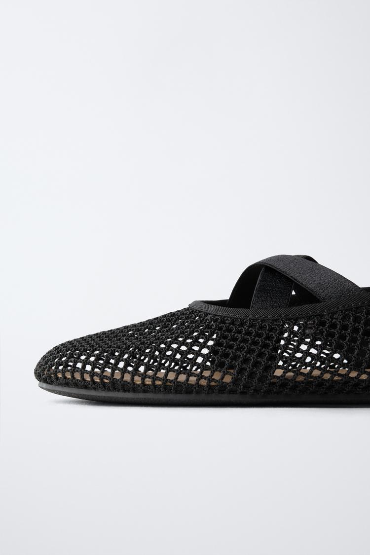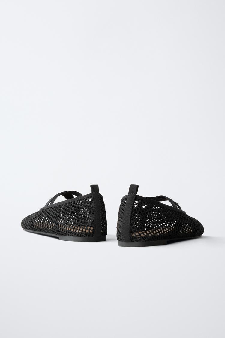 ZARA БАЛЕТКИ ИЗ СЕТЧАТОЙ ТКАНИ, ЧЕРНЫЙ