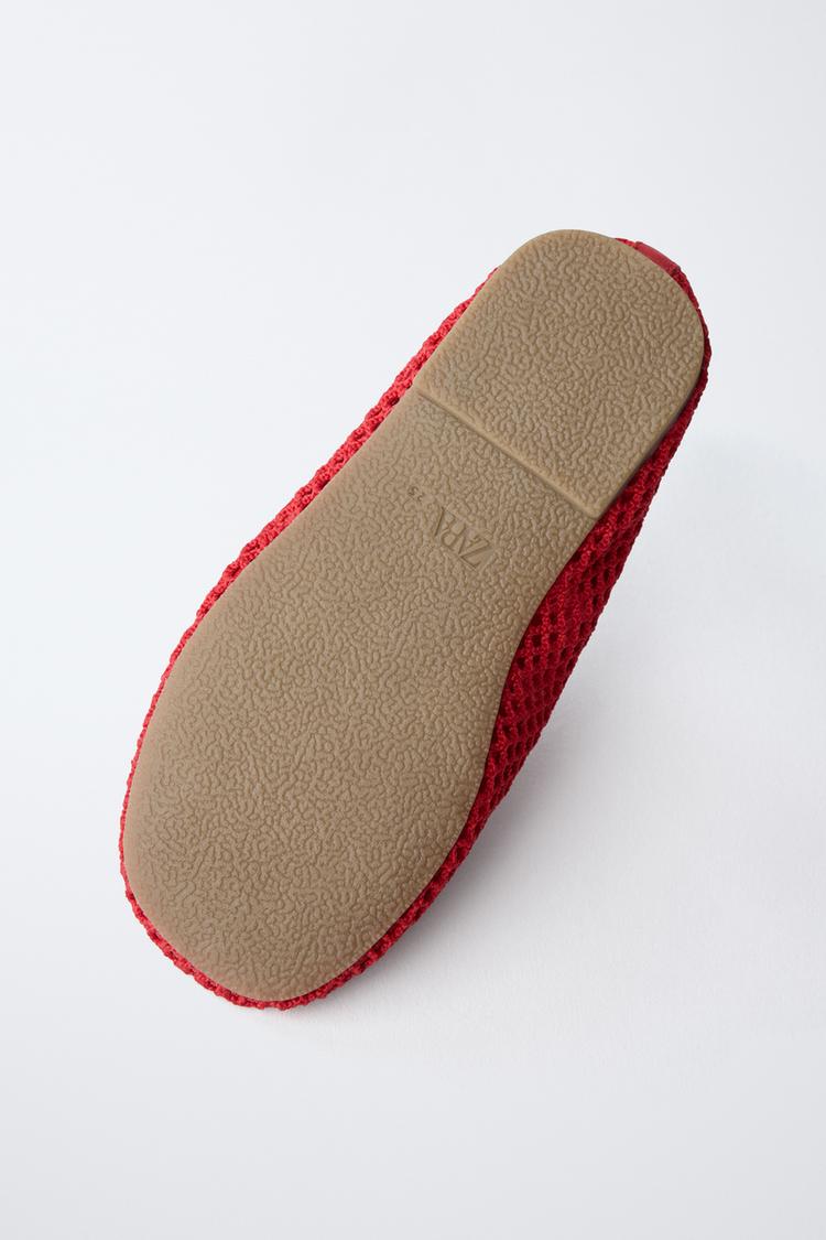 ZARA БАЛЕТКИ ИЗ СЕТЧАТОЙ ТКАНИ, КРАСНЫЙ