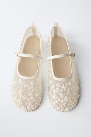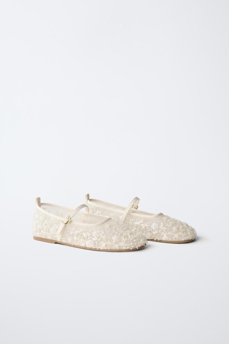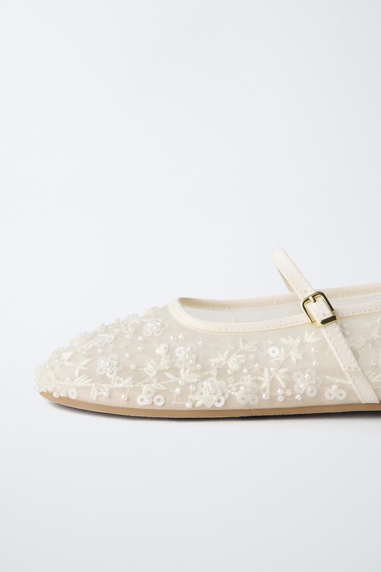 ZARA БАЛЕТКИ С БУСИНАМИ, ЭКРЮ