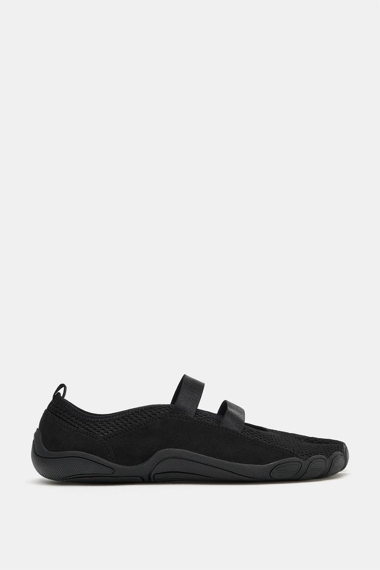 ZARA БАЛЕТКИ С ЭЛАСТИЧНЫМИ РЕМЕШКАМИ, ЧЕРНЫЙ