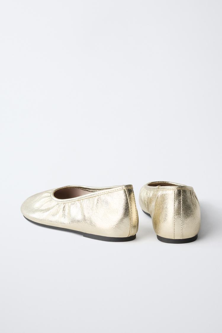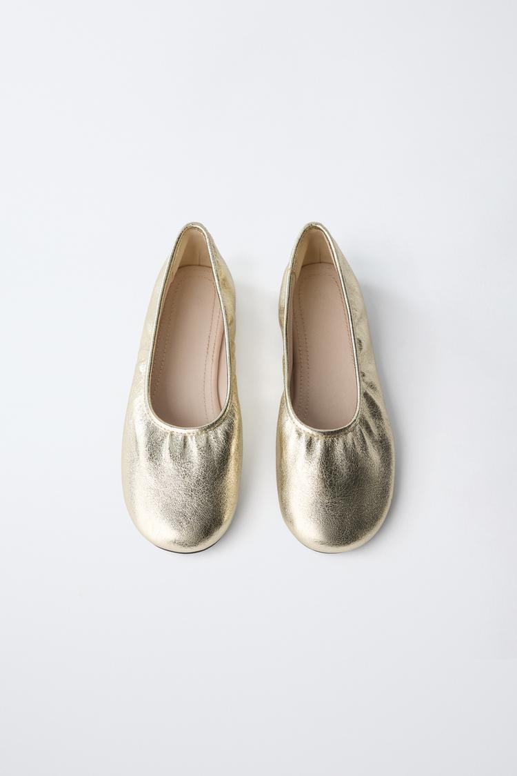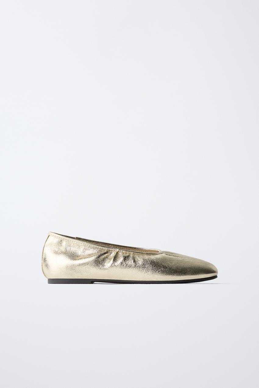 ZARA БАЛЕТКИ С МЕТАЛЛИЧЕСКИМ БЛЕСКОМ, ЗОЛОТИСТЫЙ