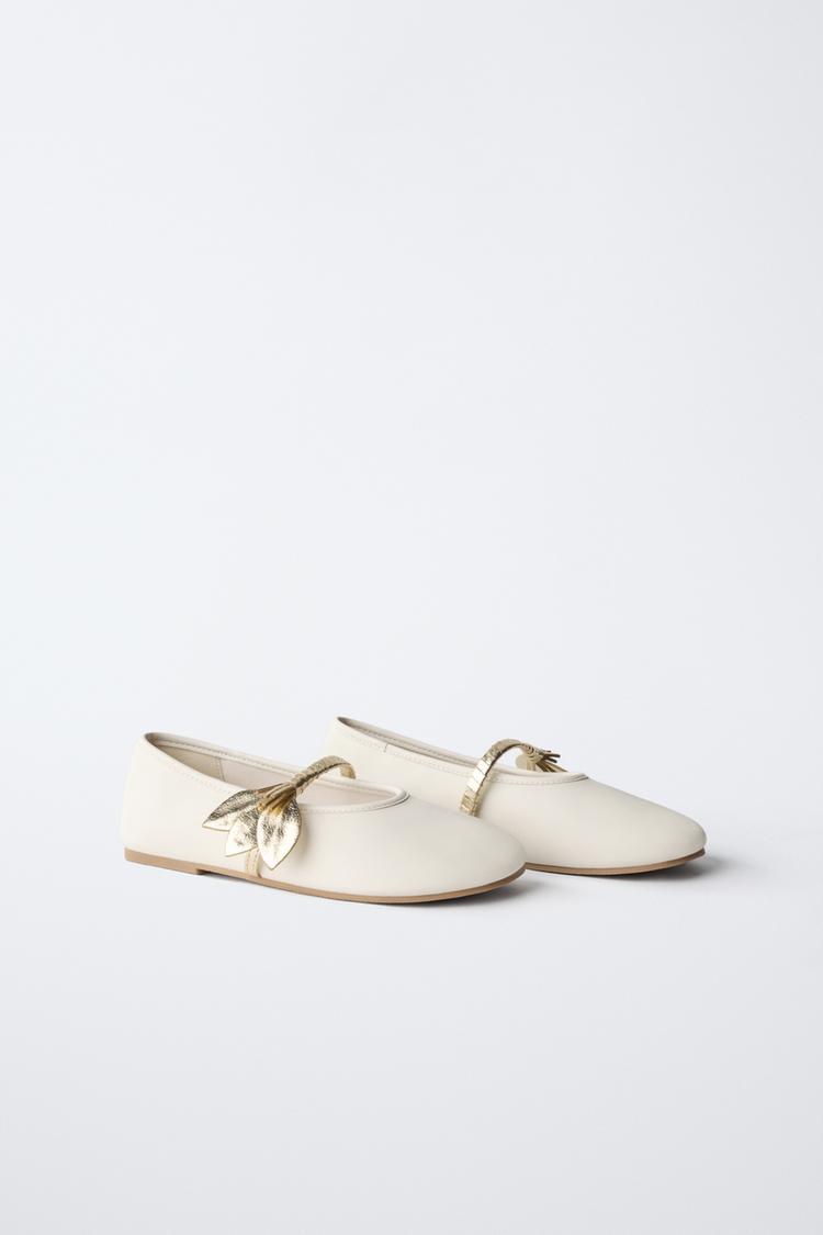 ZARA БАЛЕТКИ С ЦВЕТОЧНЫМ ДЕКОРОМ, БЕЛЫЙ
