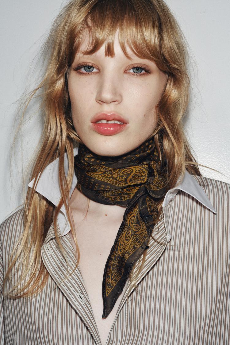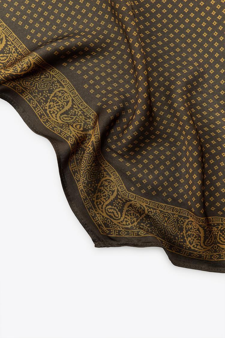 ZARA БАНДАНА С АТЛАСНЫМ ПРИНТОМ, ХАКИ