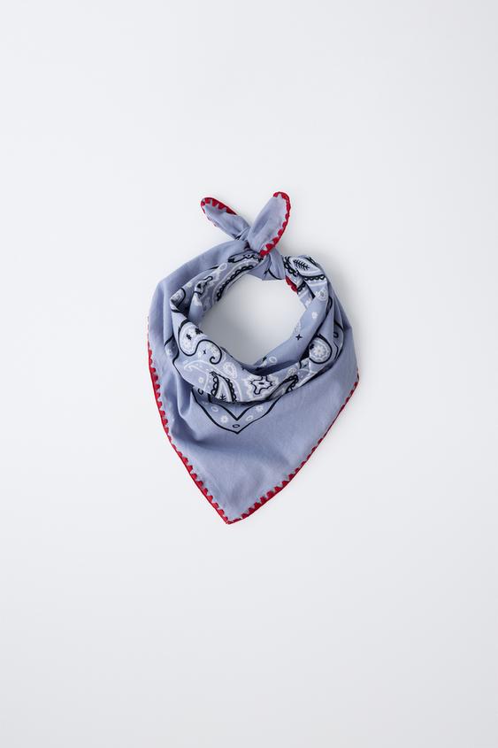 ZARA БАНДАНА С КОНТРАСТНЫМ ПРИНТОМ ПЕЙСЛИ, ГОЛУБОЙ