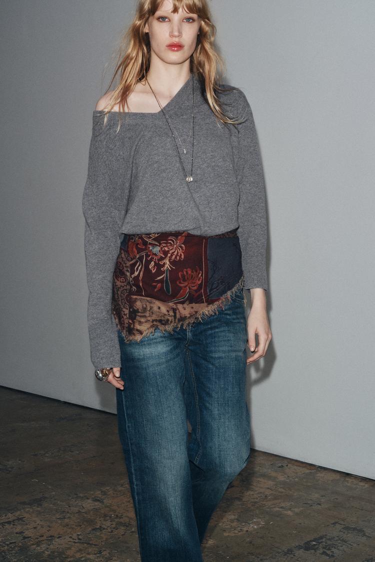 ZARA БАНДАНА С ПРИНТОМ, БАКЛАЖАННЫЙ
