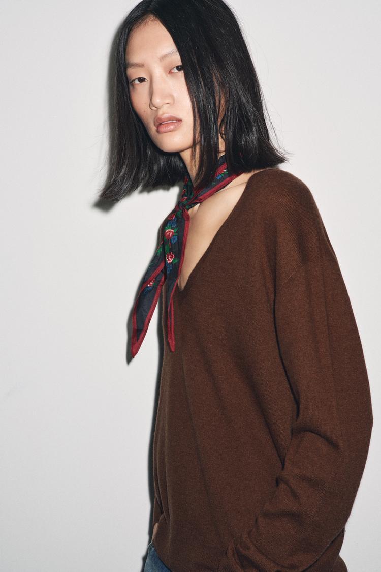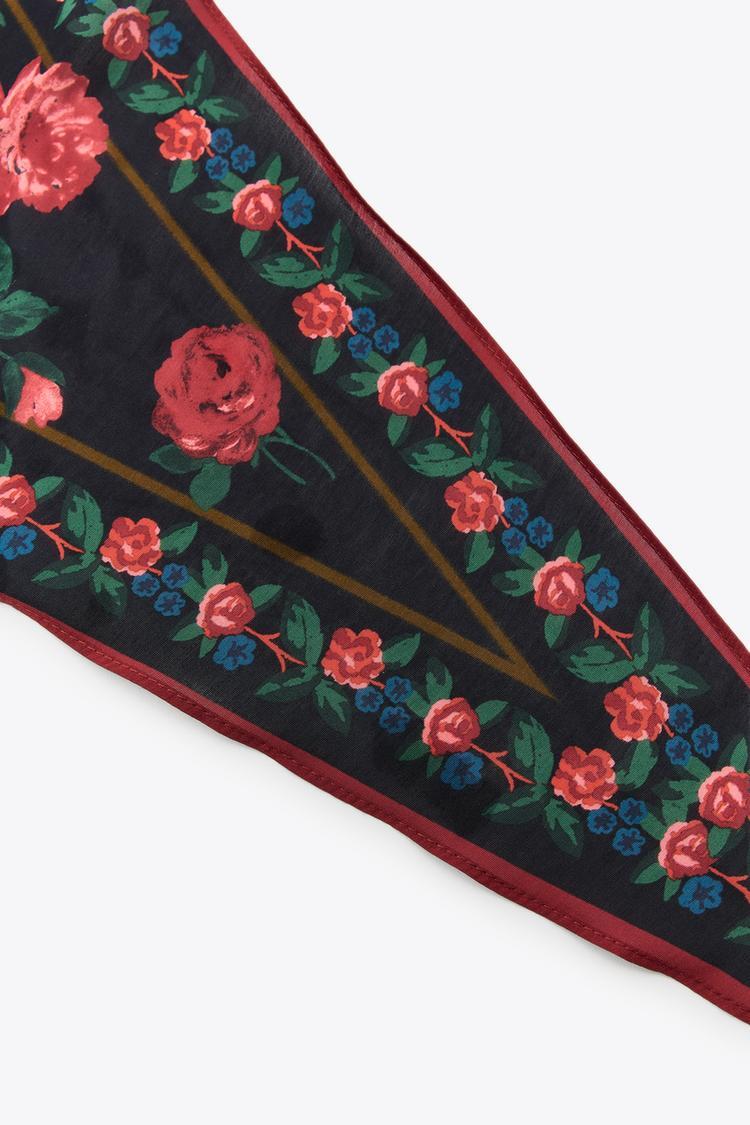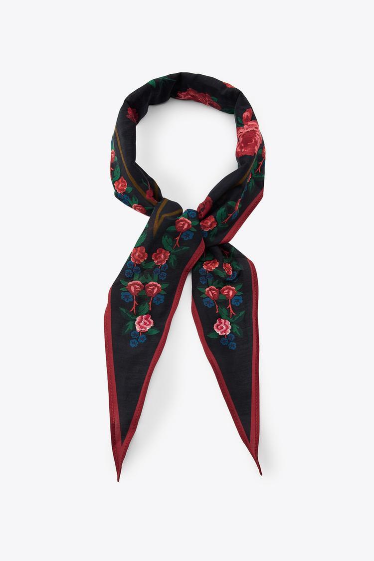 ZARA БАНДАНА С ПРИНТОМ И ВЫШИВКОЙ ИЗ ШЕЛКА, МОРСКОЙ СИНИЙ
