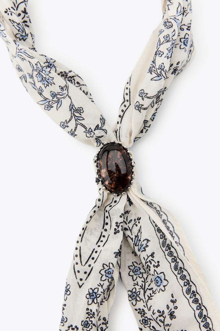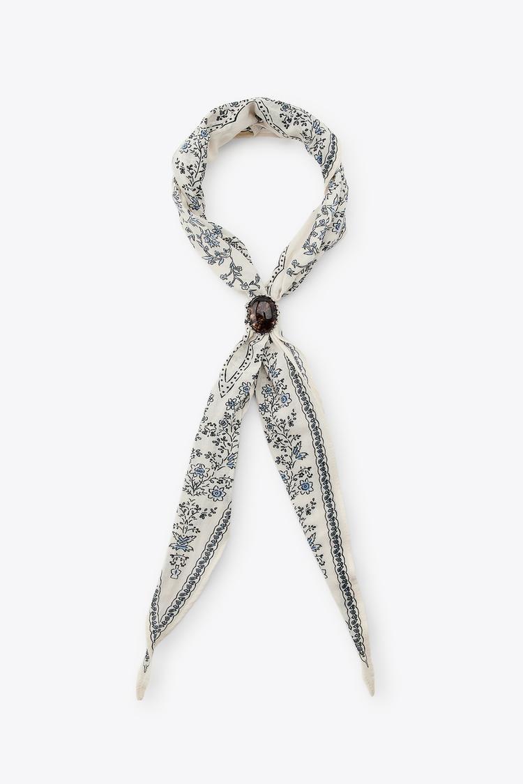 ZARA БАНДАНА С ПРИНТОМ ИЗ ХЛОПКА С КАМНЯМИ, ЭКРЮ