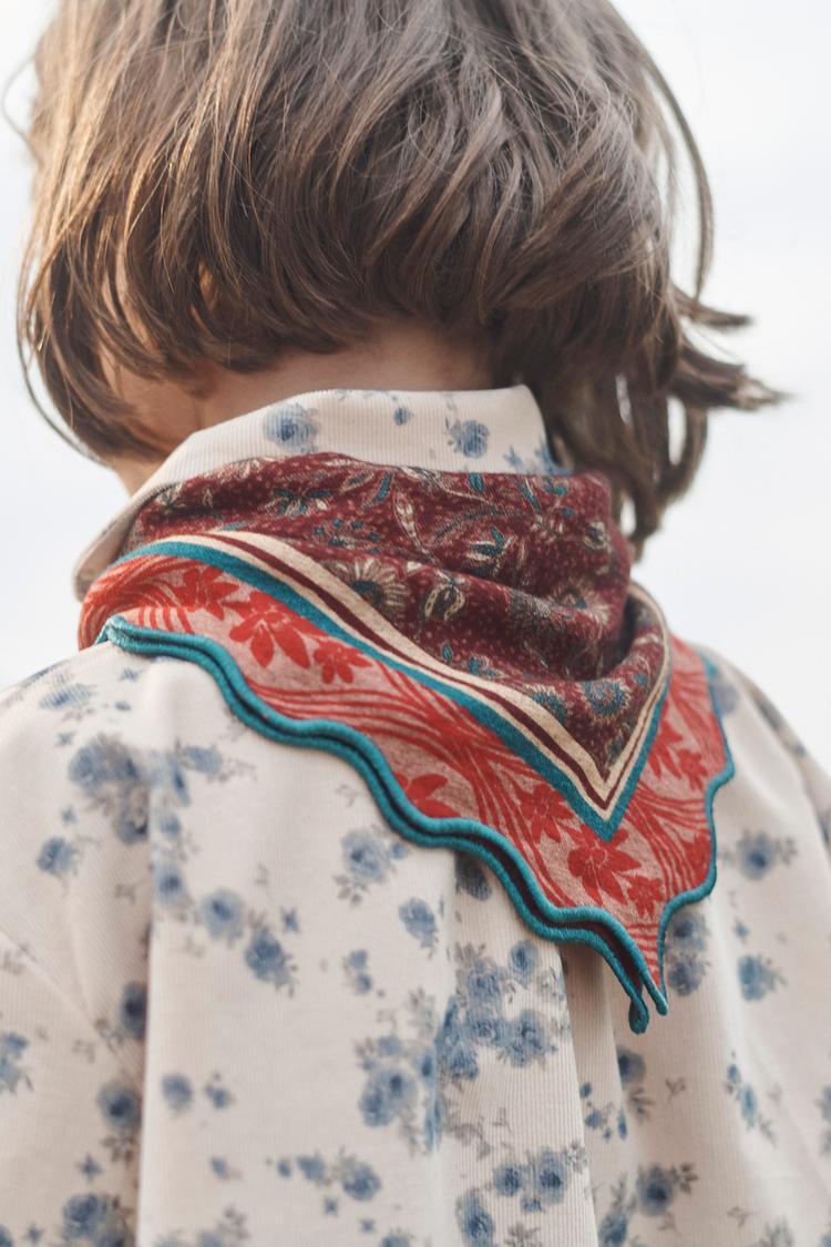 Бандана с цветочным принтом. Контрастная цветная волнистая отделка.