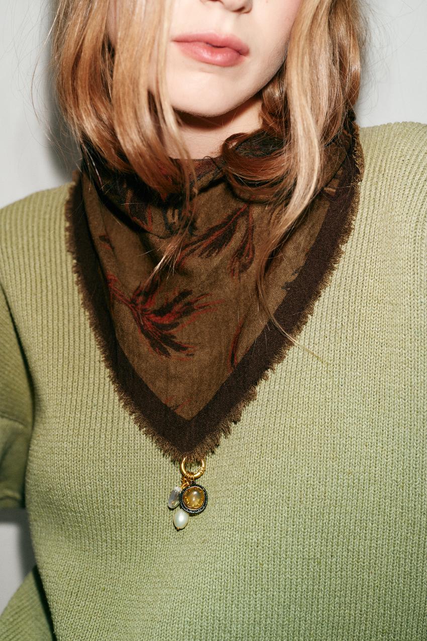 ZARA БАНДАНА С ЦВЕТОЧНЫМ ПРИНТОМ, СВЕТЛО-КОРИЧНЕВЫЙ