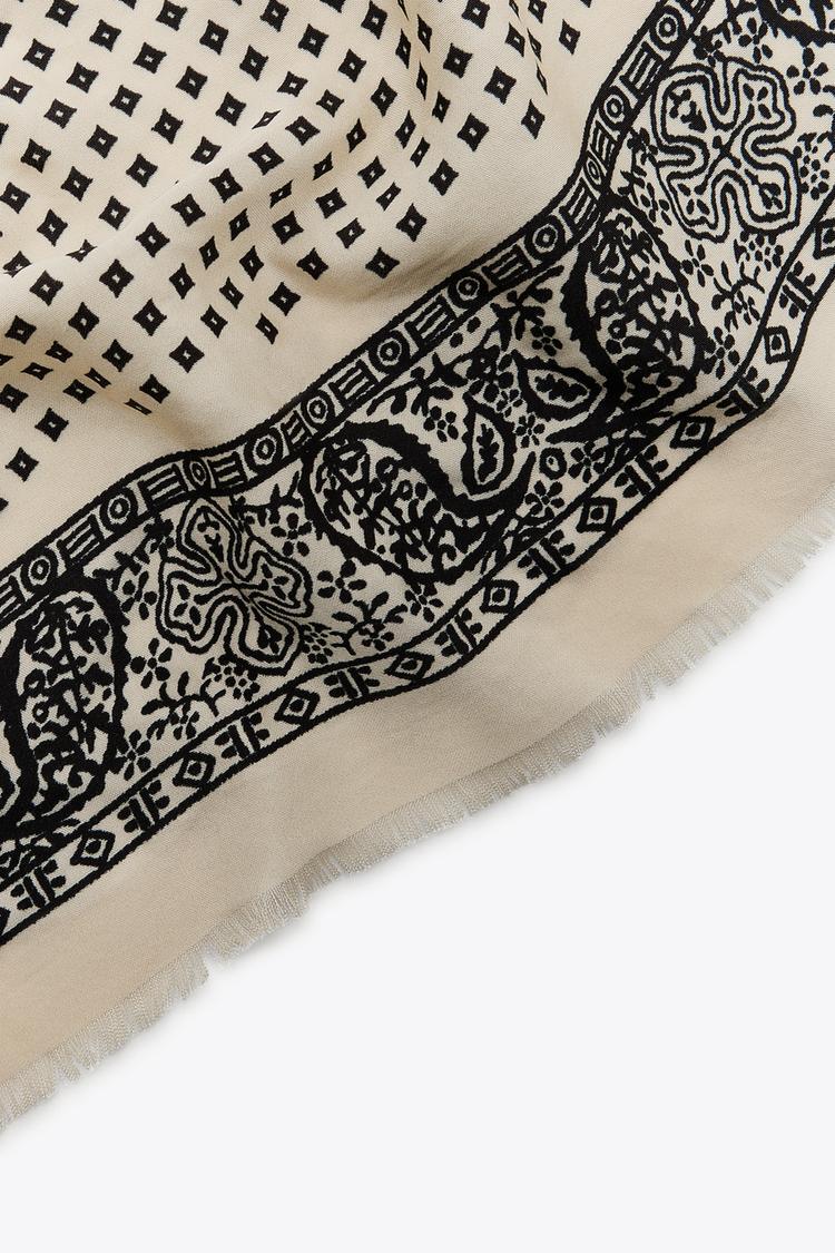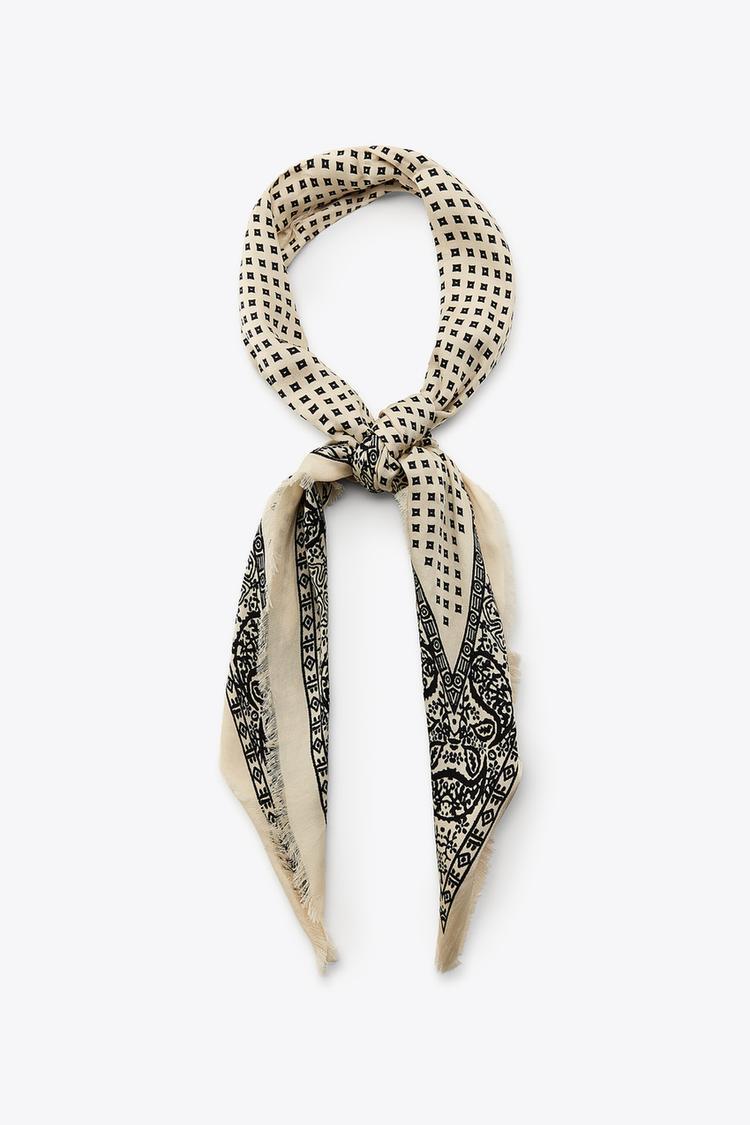 ZARA БАНДАНА САТИНОВАЯ С ПРИНТОМ, ЭКРЮ