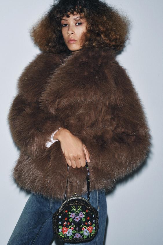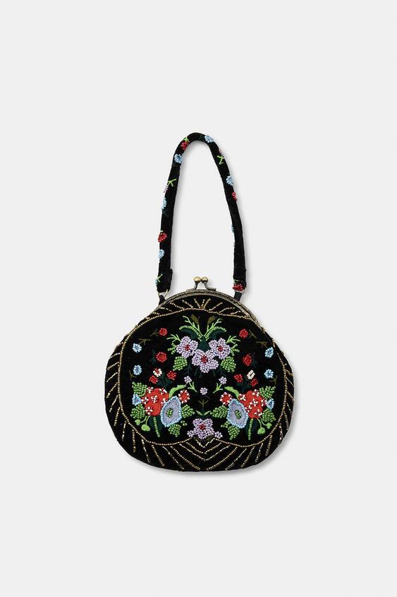 ZARA БАРХАТНАЯ СУМКА С БУСИНАМИ, ЧЕРНЫЙ