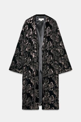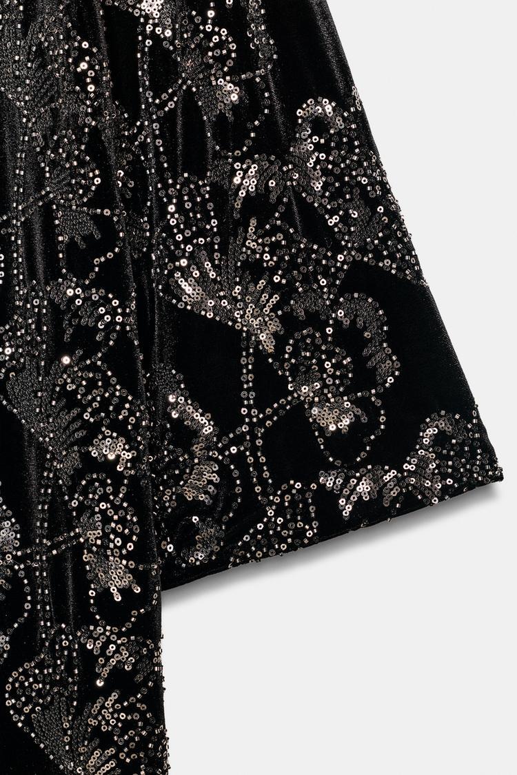 ZARA БАРХАТНОЕ ПАЛЬТО С ПАЙЕТКАМИ И БИСЕРОМ, ЧЕРНЫЙ