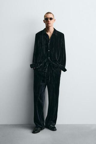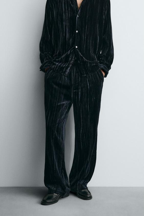 ZARA БАРХАТНЫЕ БРЮКИ СО СКЛАДКАМИ, СИНИЙ/ЧЕРНЫЙ