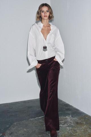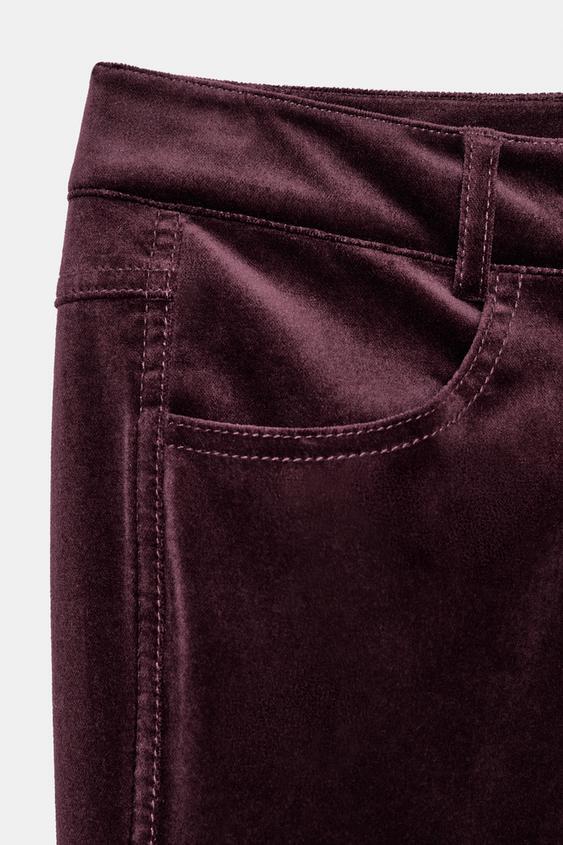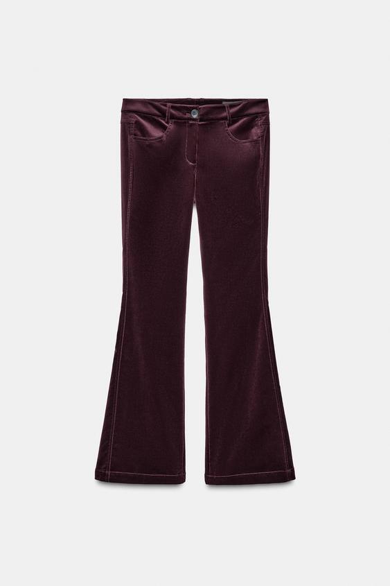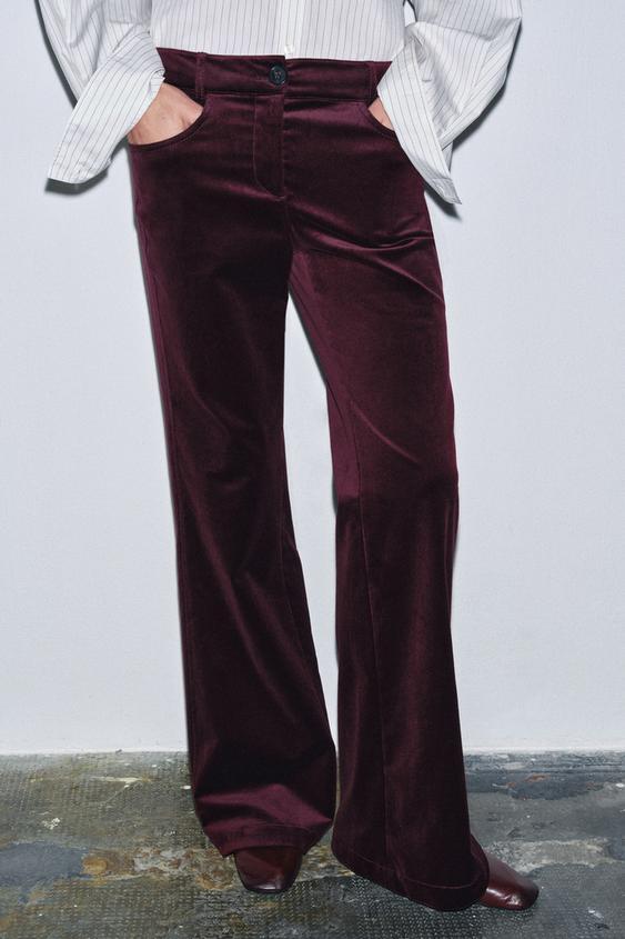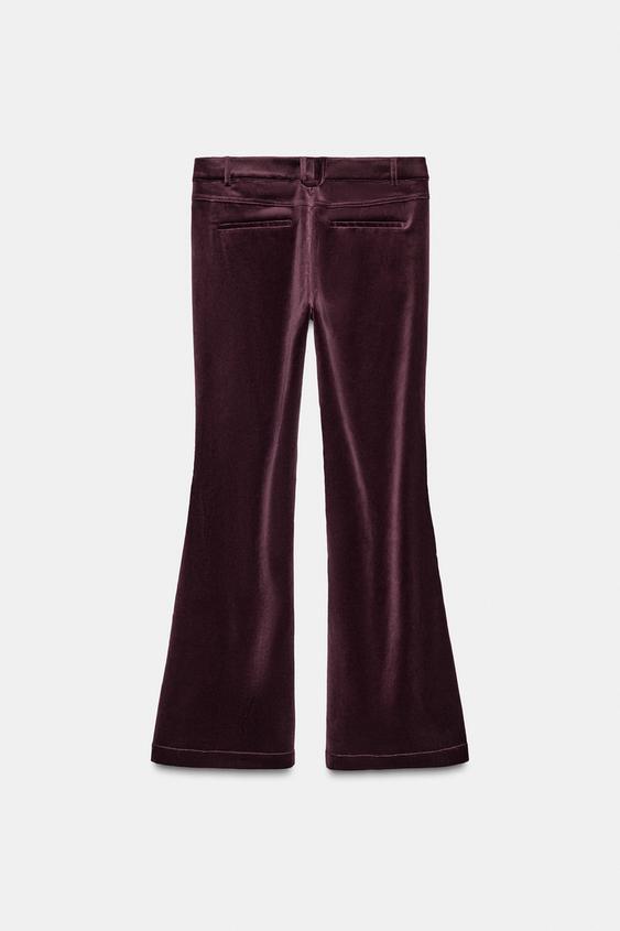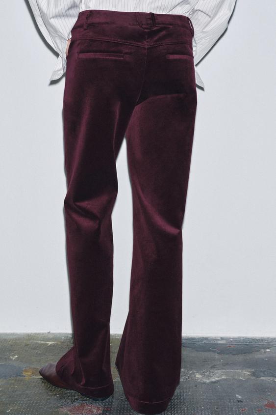 ZARA БАРХАТНЫЕ РАСКЛЕШЕННЫЕ БРЮКИ ZW COLLECTION, БУРГУНДИ