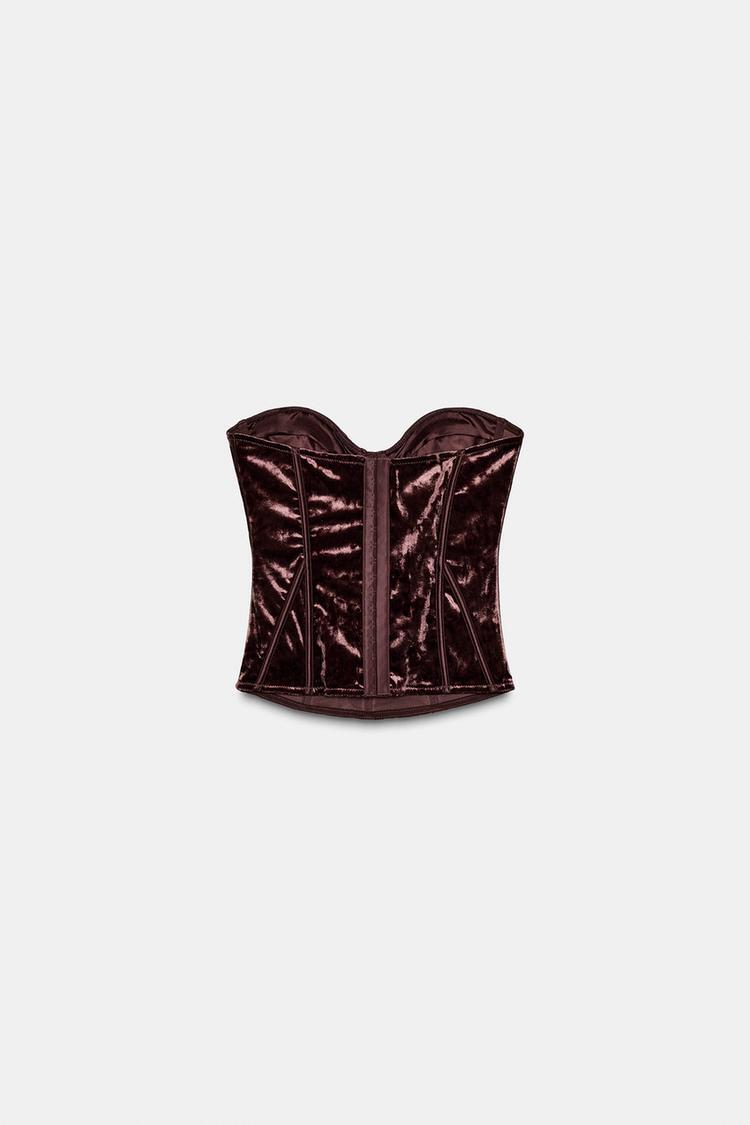 ZARA БАРХАТНЫЙ КОРСЕТ, КОРИЧНЕВЫЙ